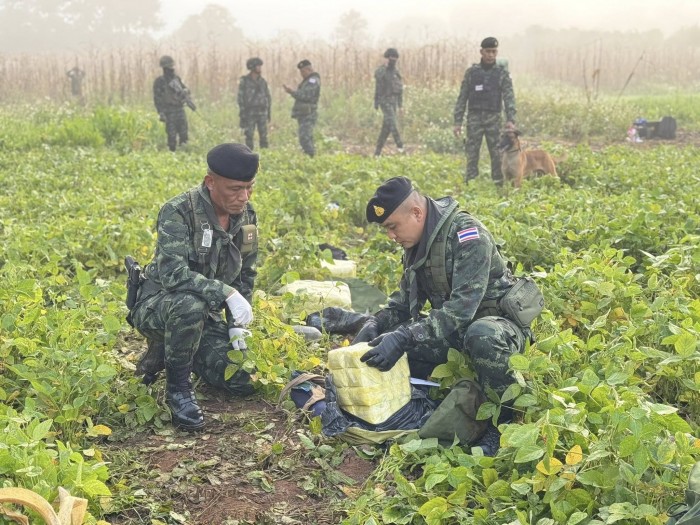 กกล.ผาเมือง โดย ฉก.ไชยานุภาพ ปฏิบัติการตรวจยึดยาเสพติดให้โทษประเภท 1 (ยาบ้า) จำนวน 18 เป้