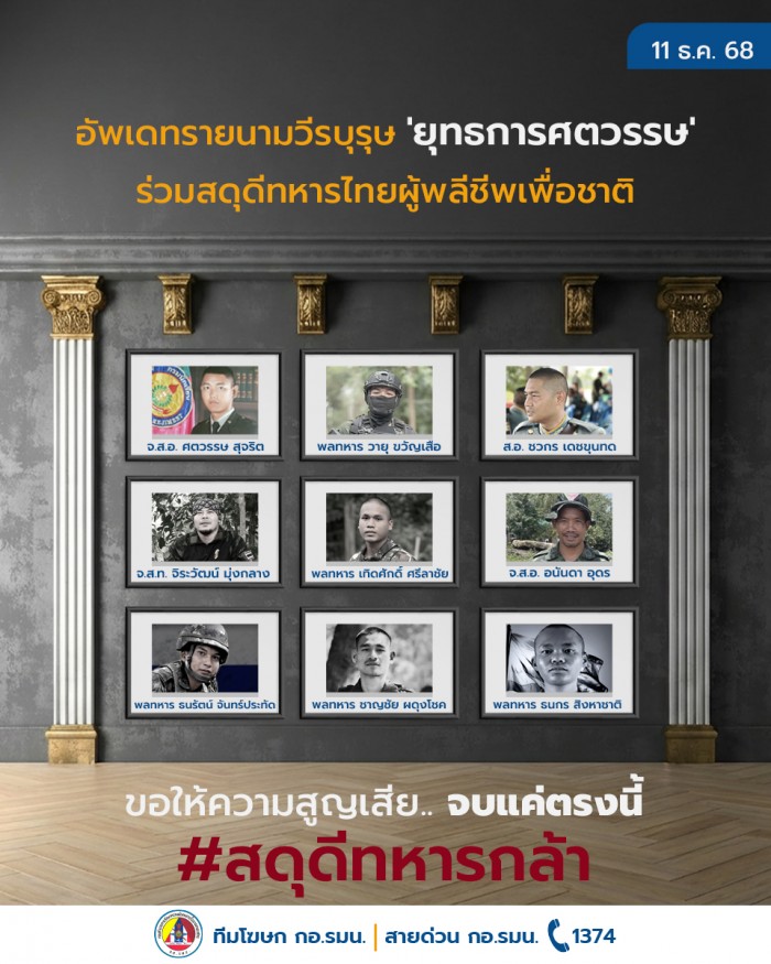 จารึกไว้ในแผ่นดิน… สดุดีรายนาม 9 วีรชนทหารกล้า ผู้สละชีพปกป้องอธิปไตยชายแดนไทย