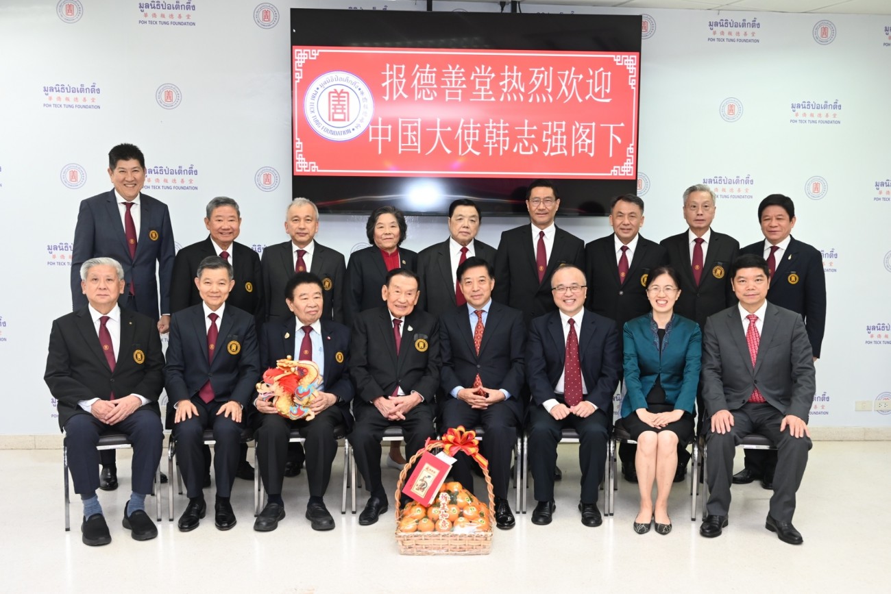 วันพุธที่ 7 กุมภาพันธ์ พ.ศ. 2567 มูลนิธิป่อเต็กตึ๊ง นำโดย นาย สุทัศน์ เตชะวิบูลย์ รองประธานกรรมการ พร้อมด้วย นายสัก กอแสงเรือง รองประธานกรรมการ นายวิชิต ชินวงศ์วรกุล รองประธานกรรมการ และคณะกรรมการมูลนิธิฯ ให้การต้อนรับ นายหาน จื้อเฉียง เอกอัครราชทูตสาธารณรัฐประชาชนจีนประจำประเทศไทย พร้อมด้วย นายอู๋ จื้อ อู่ อุปทูตสถานเอกอัครราชทูตฯ และคณะ ที่ได้เข้าพบคณะกรรมการมูลนิธิป่อเต็กตึ๊ง เนื่องในเทศกาลตรุษจีน ประจำปี 2567 และเยี่ยมชมมูลนิธิฯ โดยมี คณะผู้บริหาร พนักงาน และอาสาสมัครสัมพันธ์นานาชาติ (อาสาสมัครจีนสัมพันธ์) ร่วมให้การต้อนรับ ณ มูลนิธิป่อเต็กตึ๊ง พลับพลาไชย กรุงเทพฯ