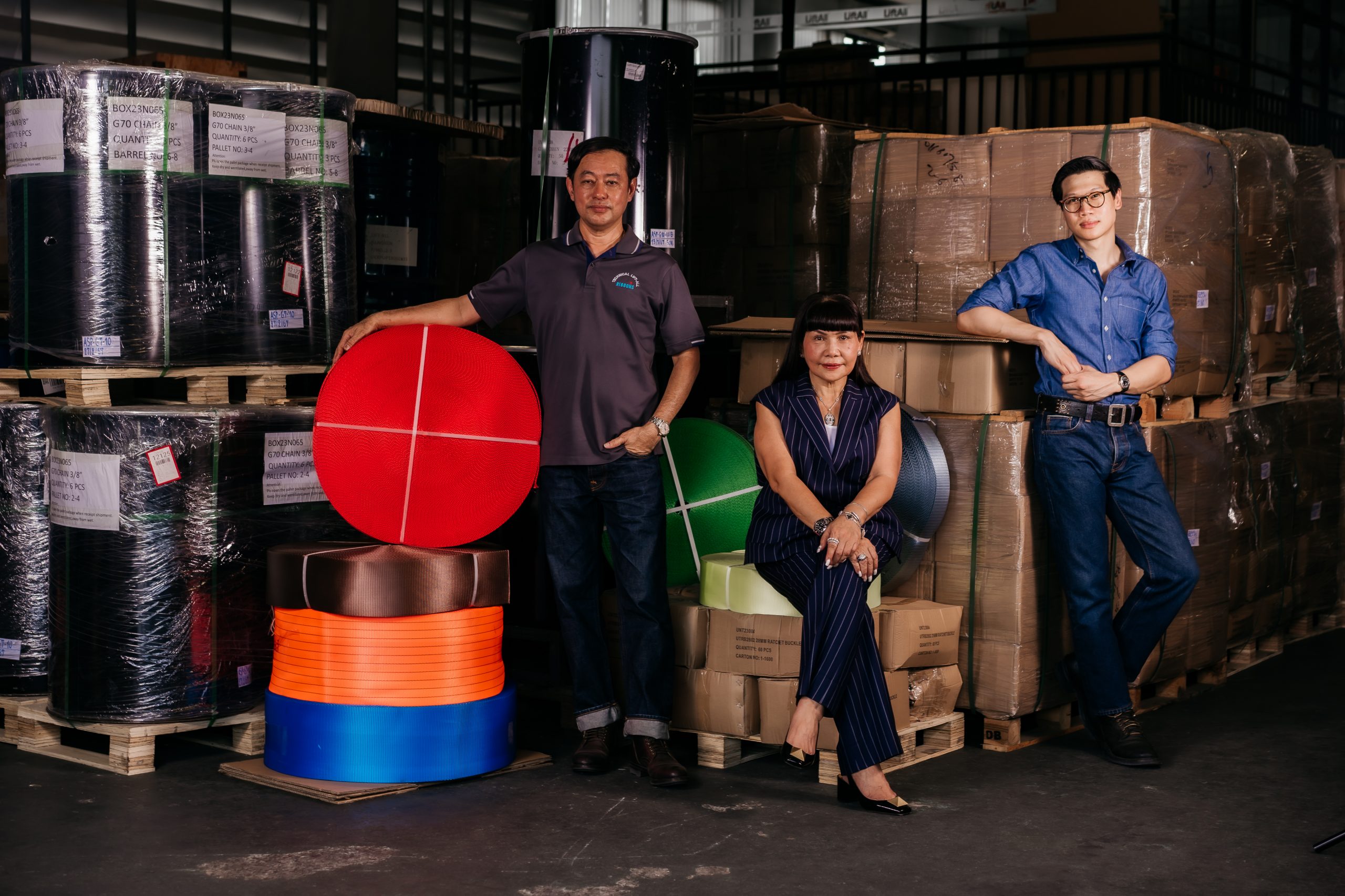 และอุปกรณ์สำหรับงานรัดสิ่งของเพื่อการบรรทุก – ขนส่ง Lashing equipment เช่น สายรัดโพลีเอสเตอร์ (High tension ratchetstarp), โซ่รัด (Transport chain), สายรัดงานแบบ One-way lashing และอุปกรณ์ประกอบการรัดเพื่อความปลอดภัย (Lashing accessories)