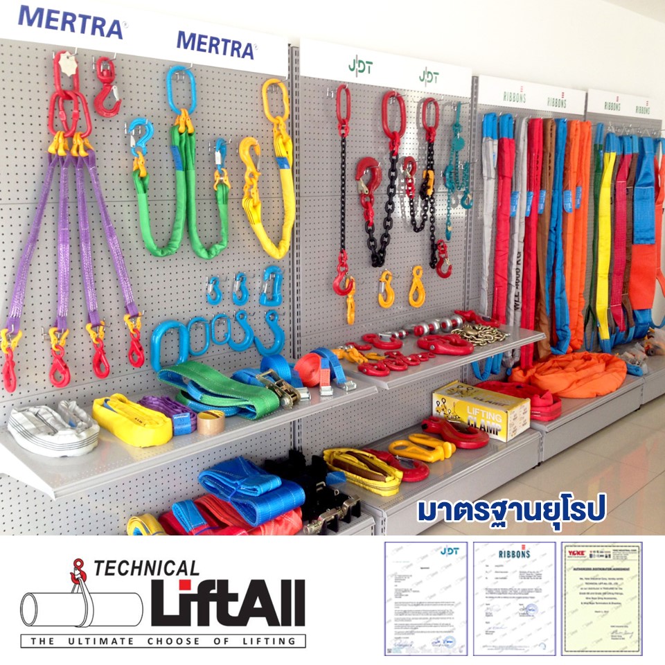 อุปกรณ์สำหรับงานยก – และเคลื่อนย้ายของหนัก Lifting equipment เช่น สลิงโพลีเอสเตอร์ (Polyester lifting sling), สลิงลวด (Wire rope sling), โซ่อุตสาหกรรม (Lifting chain), ข้อต่อและอุปกรณ์ประกอบการยกเพื่อวามปลอดภัย (Lifting accessories)