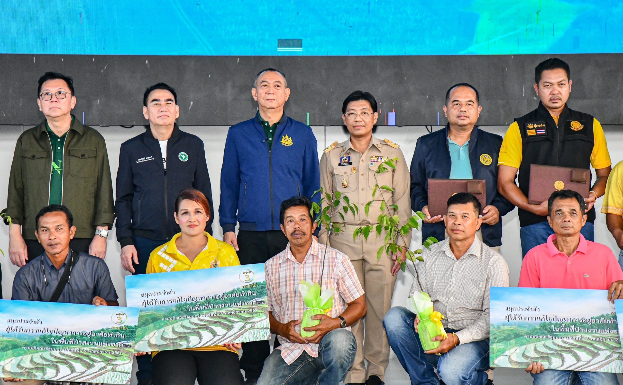 โดย ดร.เฉลิมชัย รมว.ทส. ได้มอบหนังสืออนุญาตให้เข้าทำประโยชน์หรืออยู่อาศัยภายในเขตป่าสงวนแห่งชาติป่าเทือกเขาแก้ว ให้แก่รองผู้ว่าราชการจังหวัดสงขลา เพื่อนำไปดำเนินการจัดที่ดินทำกินให้กับชุมชนต่อไป และมอบสมุดประจำตัวผู้ได้รับการแก้ไขปัญหาการอยู่อาศัยทำกินในพื้นที่ป่าสงวนแห่งชาติ ลุ่มน้ำชั้นที่ 1 และ 2 ให้แก่ราษฎร 9 อำเภอ ได้แก่ อ.รัตภูมิ อ.คลองหอยโข่ง อ.จะนะ อ.เทพา อ.นาทวี อ.นาหม่อม อ.บางกล่ำ อ.สะเดา และ อ.หาดใหญ่ เนื้อที่รวมกว่า 10,902 ไร่ รวม 1,416 ราย พร้อมมอบกล้าไม้ให้กับผู้แทนชุมชน นอกจากนี้ ยังได้มอบเครื่องหมายเชิดชูเกียรติ รักษ์ป่า รักแผ่นดิน ให้แก่ข้าราชการในพื้นที่ซึ่งเป็นผู้ที่ได้ช่วยเหลืองานราชการของกรมป่าไม้ พร้อมมอบเงินอุดหนุนกิจกรรมบริหารงานป่าชุมชนบ้านคลองควาย และบ้านปลายคลอง