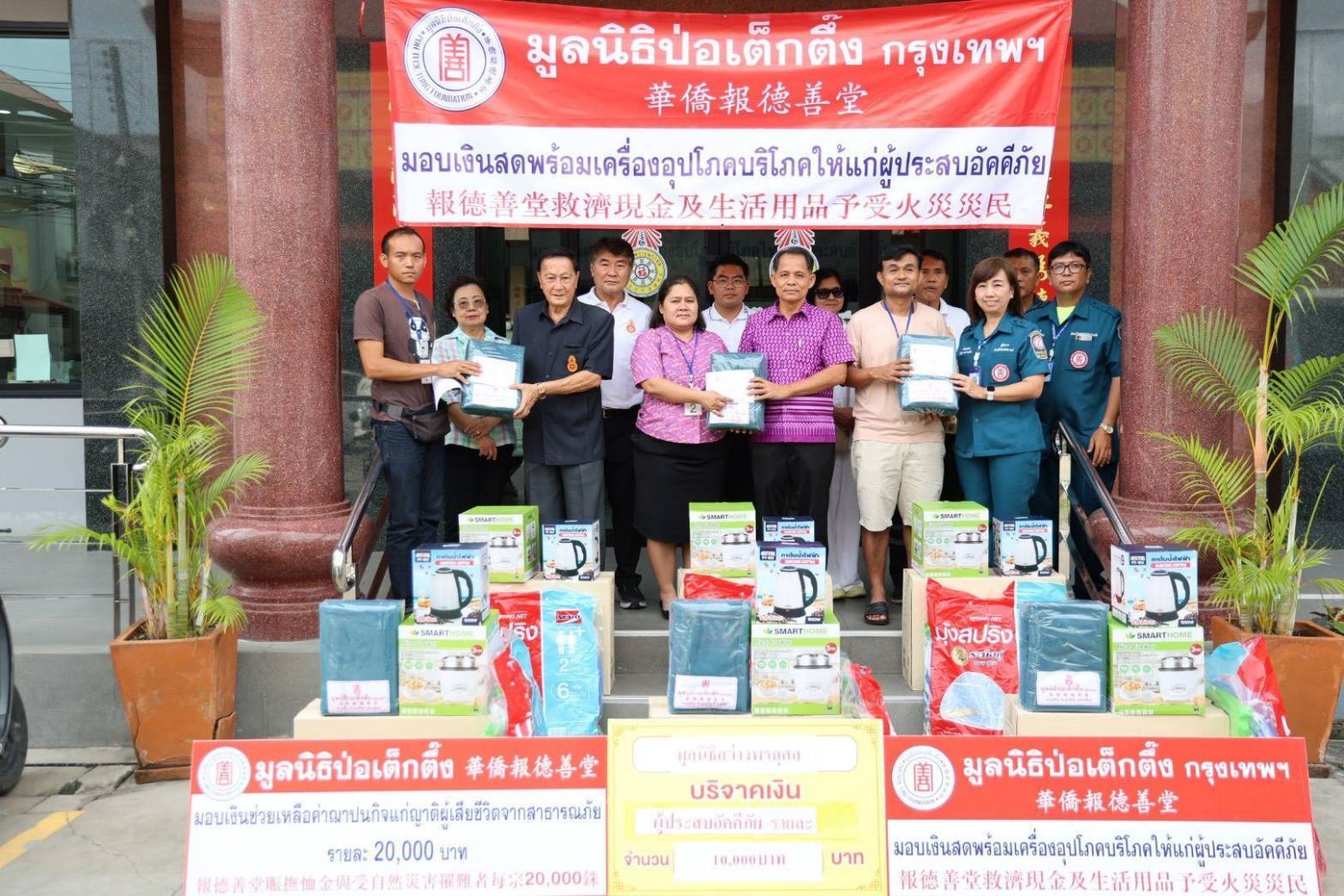 มูลนิธิป่อเต็กตึ๊ง รุดลงพื้นที่ซับน้ำตา เยียวยาผู้ประสบอัคคีภัย บริเวณ ต.ท่าประดู่ อ.เมือง จ.ระยอง พร้อมมอบเงินช่วยเหลือค่าฌาปนกิจแก่ครอบครัวผู้เสียชีวิตรวม 7 ราย ณ บริเวณมูลนิธิสว่างพรกุศล จ.ระยอง