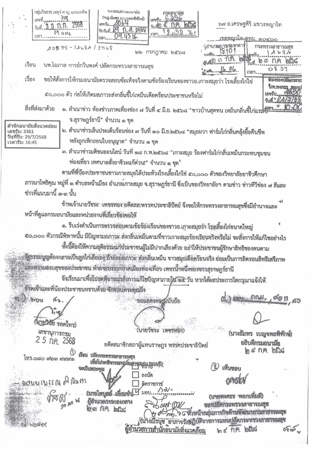 “เหม็นขี้ไก่จริง ๆ นะเธอ” กรมอนามัย ก.สาธารณสุข แจ้ง “วัชระ” ลงพื้นที่โรงเลี้ยงไก่เกาะสมุยแล้ว พบเหม็นจริง!!!