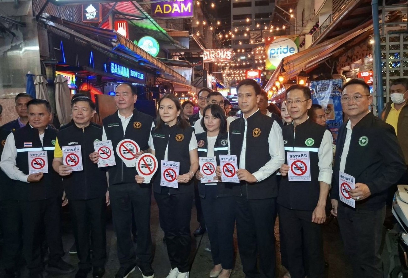 เมื่อเวลา 19.30 น.วันที่ 15 ต.ค. 2568 ที่ ซ.สีลม 4 ถ.สีลม แขวงสุริยวงศ์ เขตบางรัก กทม. นางสาวจิตศ์ตราฏ์ หมีทองธนกรณ์ เลขานุการรัฐมนตรีว่าการกระทรวงสาธารณสุข, นายแพทย์วิทิต สฤษฎีชัยกุล รองเลขาธิการคณะกรรมการอาหารและยา, นายแพทย์มณเฑียร คณาสวัสดิ์ อธิบดีกรมควบคุมโรค, นายวิน ธนพชรโภคิน ประธานคณะทำงานรัฐมนตรีว่าการกระทรวงสาธารณสุข เจ้าหน้าที่กรมสนับสนุนบริการสุขภาพ และเจ้าหน้าที่สำนักงานคณะกรรมการคุ้มครองผู้บริโภค (สคบ.) ร่วมกันลงพื้นที่เพื่อตรวจสอบและกวดขันการจำหน่ายบุหรี่ไฟฟ้า และการจัดเขตปลอดบุหรี่ตามกฎหมาย โดยจะต้องติดป้ายสติ๊กเกอร์ห้ามสูบบุหรี่ให้ชัดเจน โดยมีเป้าหมายเพื่อสร้างความเชื่อมั่นในมาตรการด้านความปลอดภัยและสุขภาพของประชาชนและนักท่องเที่ยว เพื่อสร้างพื้นที่ปลอดบุหรี่และบุหรี่ไฟฟ้าตามกฎหมายในสังคมไทย โดยเจ้าหน้าที่ลงพื้นที่ตรวจสถารประกอบการร้านอาหาร ผับบาร์ ร้านนวด สปา ภายใน ซ.สีลม 4