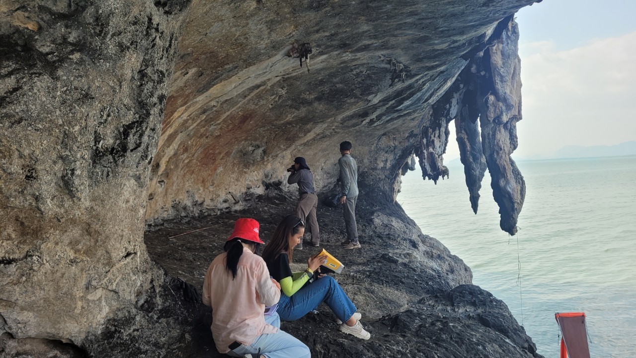 นักวิทย์ซินโครตรอนและนักวิจัย มก. ร่วมไขอดีต 3,000 ปีของ จ.กระบี่ ผ่านการวิเคราะห์ธาตุองค์ประกอบในภาพเขียนสีโบราณบนผนังถ้ำ