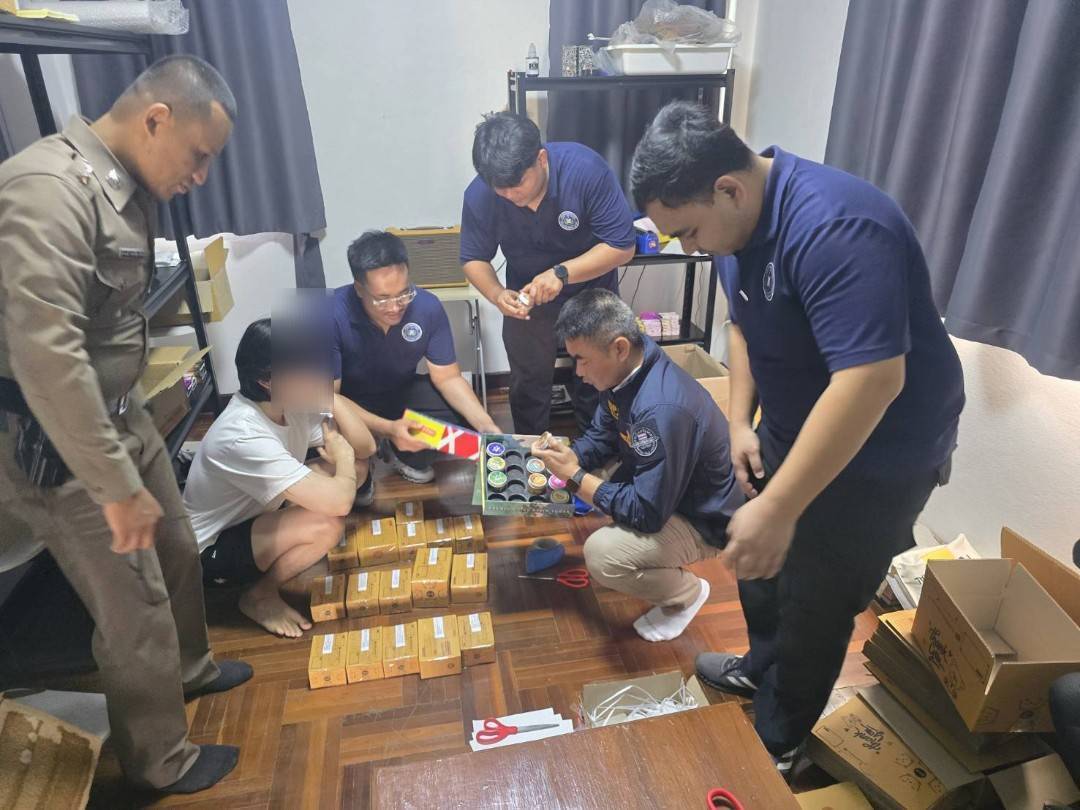 จากนั้น เมื่อวันที่ 21 ตุลาคม 2568 เวลาประมาณ 06.00 น. เจ้าพนักงานตำรวจ บก.สส.ภ.1 ได้นำหมายค้นของศาลอาญาธนบุรี ที่ 496/2568 ลงวันที่ 20 ตุลาคม 2568 เข้าทำการตรวจค้น บ้านเลขที่ 66/240 ซ.บางแวก 79 ถ.บางแวก แขวงคลองขวาง เขตภาษีเจริญ กรุงเทพมหานคร พบ นายอภิวัชญ์ฯ หรือโอ๊ต ผู้ต้องหา แสดงตัวเป็นผู้ครอบครองบ้านหลังดังกล่าว จากการตรวจค้น พบบุหรี่ไฟฟ้าและอุปกรณ์ ทั้งสิ้น 12,500 ชิ้น รวมมูลค่ากว่า 3 ล้านบาท จากการสอบถามผู้ต้องหา ให้การยอมรับว่าบุหรี่ไฟฟ้าทั้งหมด เป็นของตนจริง มีไว้เพื่อลักลอบจำหน่ายให้กับประชาชนทั่วไป จึงได้ทำการตรวจยึดไว้เป็นของกลาง และจับกุม นายอภิวัชญ์ฯ หรือโอ๊ต ผู้ต้องหา ในข้อหา “ช่วยซ่อนเร้น ช่วยจำหน่าย ช่วยพาเอาไปเสีย ซื้อ รับจำนำหรือรับไว้ โดยประการใดซึ่งของอันตนพึงรู้ว่าเป็นของมิได้เสียค่าภาษี หรือของต้องจำกัด หรือของต้องห้าม หรือที่เข้ามาในราชอาณาจักรโดยยังมิได้ผ่านศุลกากรโดยถูกต้อง หรือเป็นของนำเข้ามาในราชอาณาจักรโดยหลีกอากร ตาม พ.ร.บ.ศุลกากร พ.ศ.2560” และนำตัวผู้ต้องหาพร้อมด้วยบุหรี่ไฟฟ้าของกลาง นำส่งพนักงานสอบสวน สน.หลักสอง เพื่อดำเนินการตามกฎหมายต่อไป
