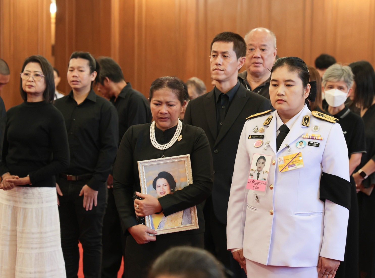 นางธัยพร อร่ามเมฆา อายุ ๖๕ ปี เดินทางมาจากบ้านย่านบางเขน ตั้งแต่เช้า พร้อมกับลูกสาว กล่าวว่า ตั้งใจมาถวายสักการะน้อมเกล้าน้อมกระหม่อมส่งเสด็จสู่สวรรคาลัย เนื่องจากในชีวิตได้มีโอกาสเข้าเฝ้าฯ ในหลวง รัชกาลที่ ๙ และสมเด็จพระพันปีหลวง มาหลายครั้ง ตั้งแต่อายุ ๑๕ ปี และถือได้ว่า มีความจดจำที่ทำให้เกิดความรัก ผูกพันเทิดทูนใน สถาบันและราชวงศ์จักรีวงศ์ ทั้งนี้สิ่งที่ตนจำจดและมีต่อสมเด็จพระพันปีหลวง คือ ช่วงเวลาเข้าเฝ้าฯตอนเด็ก พระองค์จะรับสั่งถามทุกข์สุข เช่น หนูจ๊ะมาจากไหน กินข้าวหรือยังจ๊ะ ทำให้ซาบซึ้งในพระเมตตา นอกจากนี้ ก็มีความซาบซึ้งในพระมหากรุณาธิคุณที่สมเด็จพระพันปีหลวงทรงงานเพื่อพสกนิกรชาวไทย โดยเฉพาะการพัฒนาคุณภาพชีวิตให้คนไทยทั่วทุกภาคของประเทศได้มีความกินดีอยู่ดีและมีคุณภาพชีวิตที่ดี