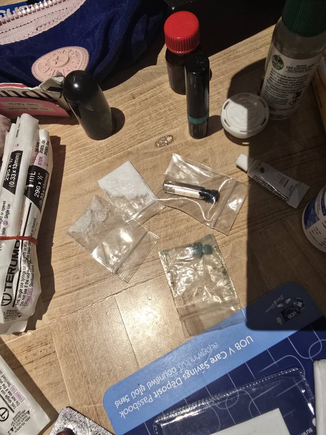 1.นายทวีพลฯ อายุ 35 ปี ภูมิลำเนา แขวงอ่อนนุช เขตสวนหลวง จ.กรุงเทพฯ ถูกแจ้งข้อหา “มีไว้ในความครอบครองซึ่งยาเสพติดให้โทษประเภท 1 (เมทแอมเฟตามีน,ยาบ้า,ไอซ์ และยาอี) โดยฝ่าฝืนต่อกฎหมาย,มีไว้ในความครอบครองซึ่งยาเสพติดให้โทษประเภท 2 (เคตามีน) เพื่อเสพโดยฝ่าฝืนต่อกฎหมาย, จำหน่ายหรือจัดหาสารระเหยให้แก่ผู้ซึ่งตนรู้หรือควรรู้ว่าเป็นผู้ติดสารระเหย และเสพยาเสพติดให้โทษประเภท 1 โดยฝ่าฝืนต่อกฎหมาย”