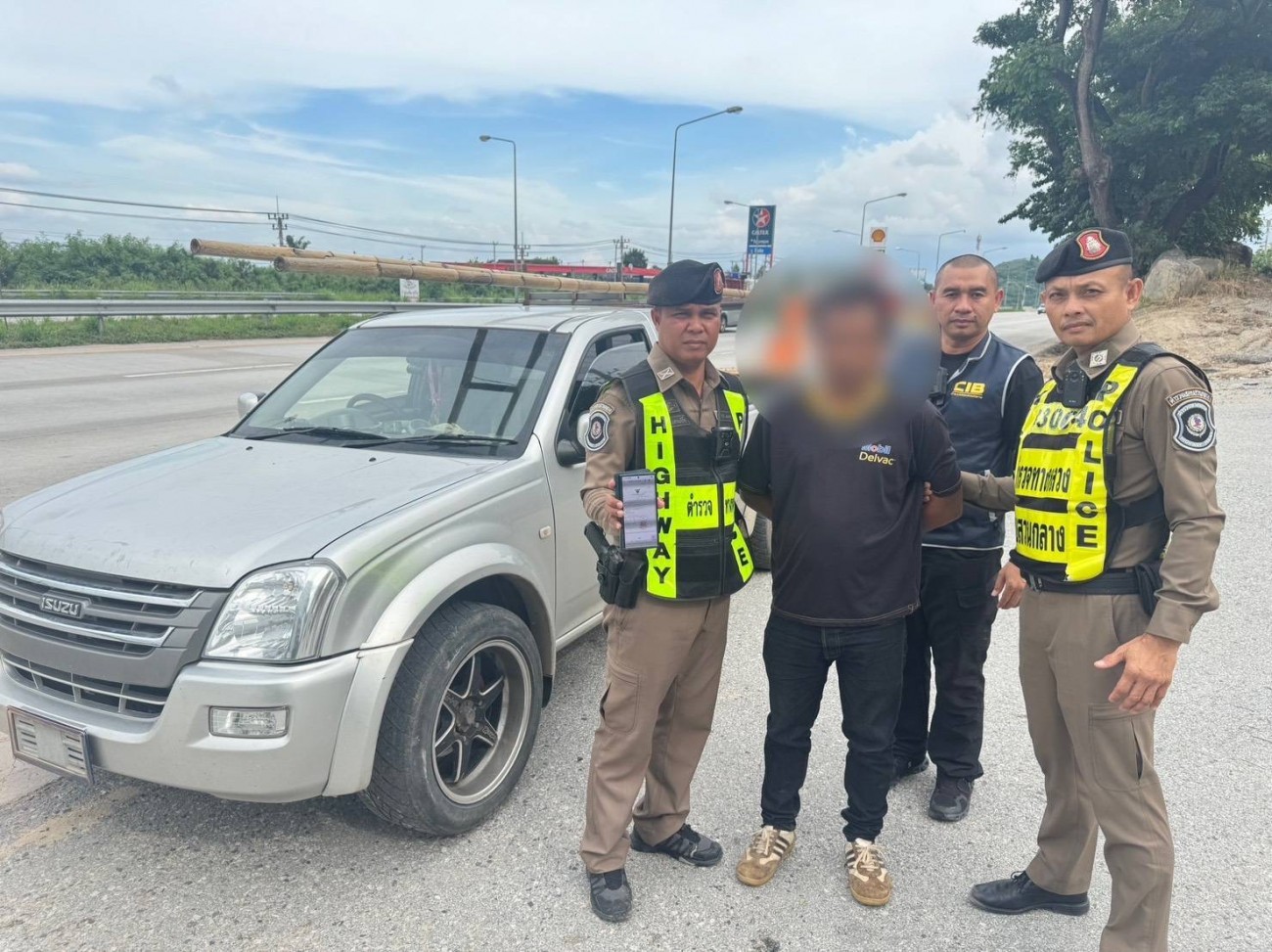 กองบัญชาการตำรวจสอบสวนกลาง (CIB) โดย กองบังคับการตำรวจทางหลวง (บก.ทล.) พล.ต.ท.ณัฐศักดิ์ เชาวนาศัย ผบช.ก., พล.ต.ต.โสภณ สารพัฒน์ รอง ผบช.ก., พล.ต.ต.พรศักดิ์ เลารุจิราลัย ผบก.ทล., พ.ต.อ.มีชัย กำเนิดพรหม รอง ผบก.ทล., พ.ต.อ.อภิชาติ เรนชนะ ผกก.3 บก.ทล., พ.ต.ท.ตุลยวัต เมืองทอง รอง ผกก.3 บก.ทล., พ.ต.ท.สมบูรณ์ เอื้อสมานไมตรี รอง ผกก.3 บก.ทล., พ.ต.ต.ก่อเกียรติ เกียรติตั้ง สว.ส.ทล.3 กก.3 บก.ทล.เจ้าหน้าที่ชุดจับกุม นำโดย ร.ต.อ.ประพันธ์ เอี่ยมประโคน รอง สว.ส.ทล.3 กก.3 บก.ทล, ร.ต.ท.จินดา โพธิ์ทอง รอง สว.(ป.) ส.ทล.3 กก.3 บก.ทล, ด.ต.ณัฐวุฒิ เสาเปรีย, ด.ต.ณัฐพงษ์ สิ่วสำแดง ผบ.หมู่.ส.ทล.3 กก.3 บก.ทล.ร่วมกันจับกุม นายอภิชาติฯ อายุ 36 ปี ผู้ต้องหา ตามหมายจับของศาลแขวงขอนแก่น ที่ จ.221/2568 ลงวันที่ 27 สิงหาคม 2568 ซึ่งต้องหาว่ากระทำความผิดฐาน “ร่วมกันฉ้อโกงและร่วมกันนำเข้าสู่ระบบคอมพิวเตอร์ที่บิดเบือนหรือข้อมูลคอมพิวเตอร์อันเป็นเท็จโดยประการที่น่าจะเกิดความเสียหายแก่ผู้อื่นโดยตรง” สถานที่จับกุม บริเวณ ทล.36 ต.ทับมา อ.เมือง จ.ระยอง