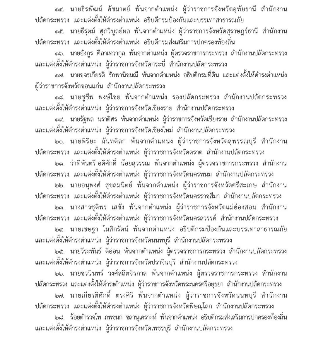 1. นายนฤชา โฆษาศิวิไลซ์ พ้นจากตำแหน่ง ผู้ตรวจราชการกระทรวง สำนักงานปลัดกระทรวง และแต่งตั้งให้ดำรงตำแหน่ง อธิบดีกรมการปกครอง