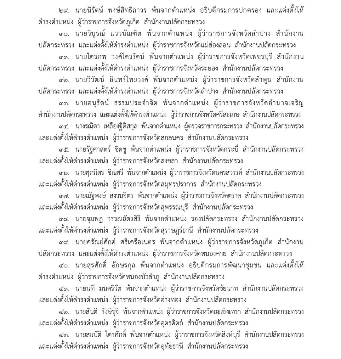 5. นายธีรุตม์ ศุภวิบูลย์ผล พ้นจากตำแหน่ง ผู้ว่าราชการจังหวัดสุราษฎร์ธานี สำนักงานปลัดกระทรวง และแต่งตั้งให้ดำรงตำแหน่ง อธิบดีกรมส่งเสริมการปกครองท้องถิ่น