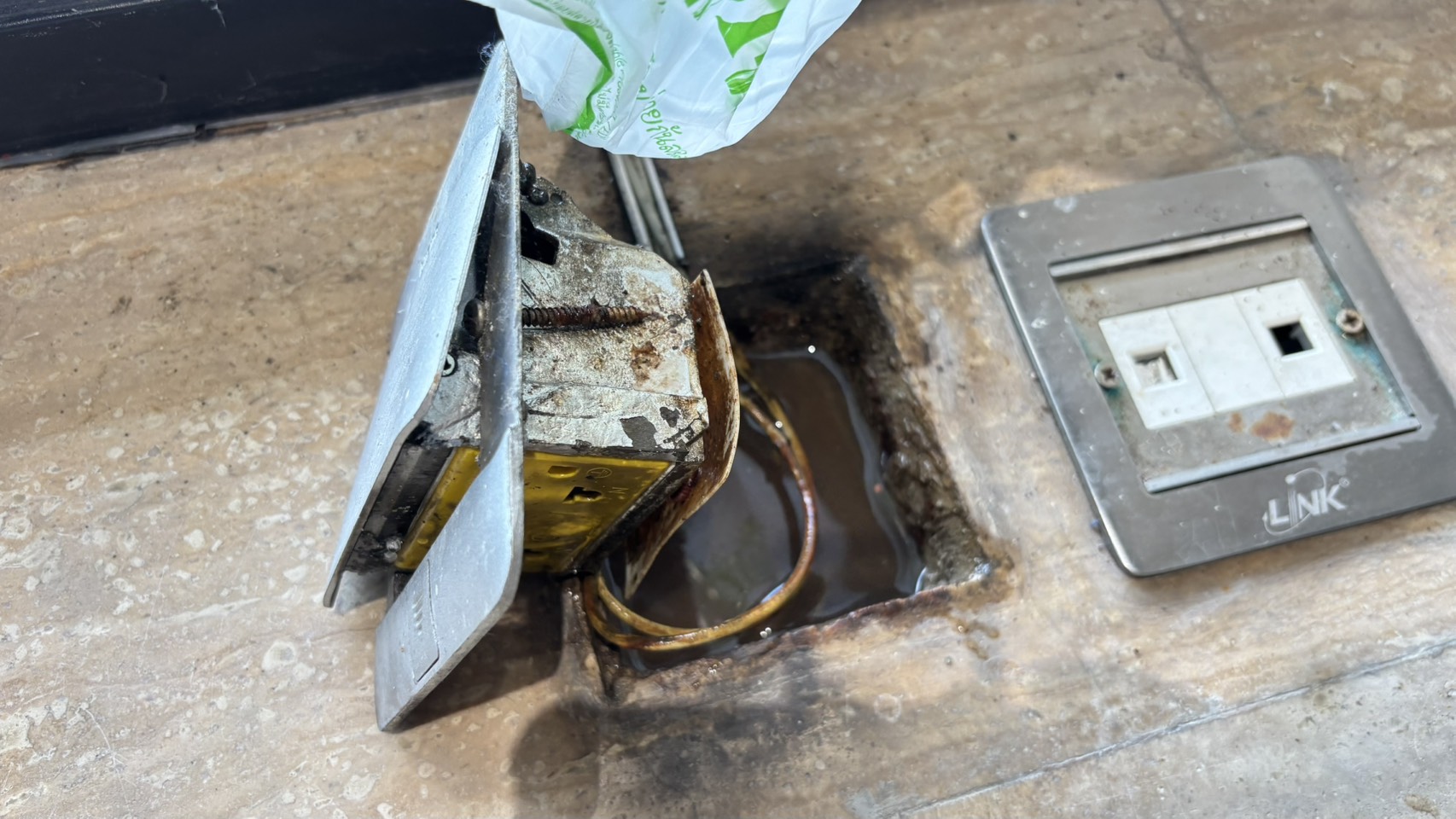 ไหนว่าคนเท่าเทียมกัน มีผลงานความคิดวิปริตทำลายพื้นกระเบื้องหินอ่อนให้เป็นแหล่งรับน้ำ บริเวณปลั๊กไฟที่ฝังตัวในพื้นกระเบื้องทางเข้ามีน้ำท่วมขัง ไฟฟ้าลัดวงจรอาจช็อตท่าน สส. สว. ข้าราชการและประชาชนผู้เป็นเจ้าของภาษีตายง่ายๆ ในสภาได้