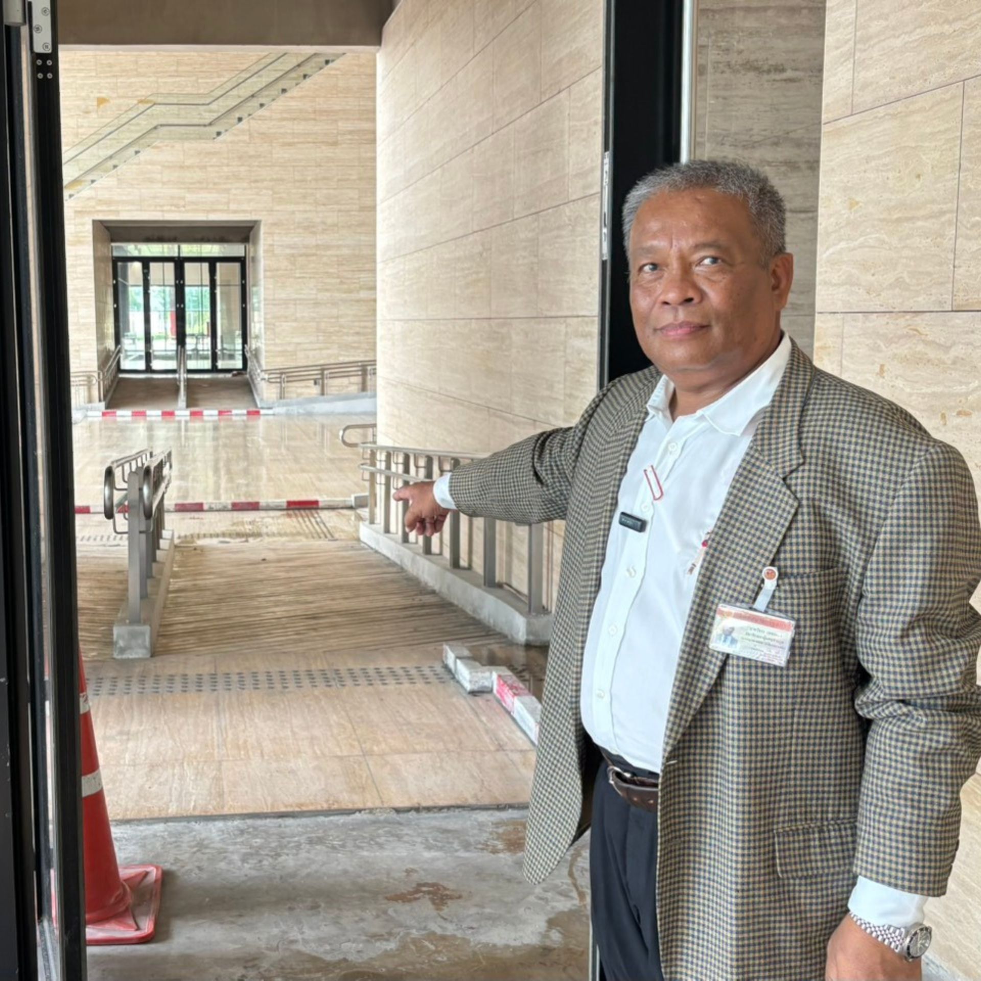 - ทางเข้าสภาฯ ด้านหน้ามีการสร้างเขื่อนกั้นไม่ให้น้ำฝนไหลเข้าสภาทำให้ขวางทางเดินรถเข็นของคนพิการที่จะเข้าสภา