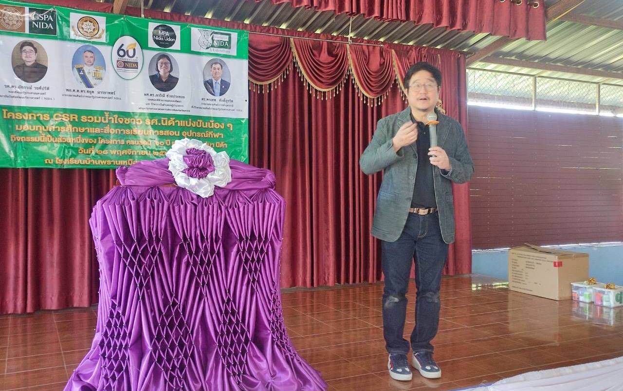 28 พ.ย.68 เวลา 13.30 น. รศ.ดร.อัชกรณ์ วงศ์ปรีดี คณบดีคณะ รศ.นิด้า พล.ต.ต.ดร.ชยุต มารยาทตร์ นายกสมาคมศิษย์เก่าคณะ รศ.NIDA ว่าที่ ร.ต.รักชัย เลิศสุบิน ปลัด จ.อุดรธานี ดร.พรเทพ ศักดิ์สุจริต ประธานชมรมศิษย์เก่านิด้าอุดรธานี และ นศ.หลักสูตร MPA รุ่น 31-32 คณะ ร.ศ. นิด้า จ.อุดรธานี ได้ร่วมกันดำเนินกิจกรรมตามโครงการ CSR รวมน้ำใจชาว รศ.นิด้า แบ่งปันน้องๆ ณ โรงเรียนบ้านพรานเหมือน อ.เมือง จ.อุดรธานี โดยมีผู้บริหารและนักเรียนจำนวน 9 โรงเรียนได้แก่ รร.บ้านพรานเหมือน รร.บ้านเชียงพัง รร.บ้านเม่น รร.บ้านหัวบึง รร.บ้านดู่ รร.ชุมชนนากว้างพัฒนศึกษา รร.บ้านหนองคาม (ค่ายเสนีย์อุปถัมภ์) รร.หนองสำโรงวิทยา และ รร.บ้านเลื่อม รวม