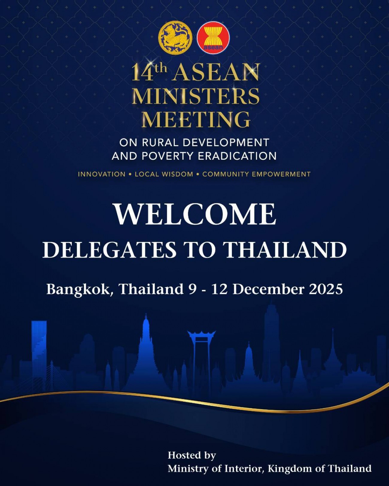 สำหรับการประชุมรัฐมนตรีอาเซียนด้านการพัฒนาชนบทและการขจัดความยากจน ครั้งที่ 14ฯ จะจัดขึ้นวันที่ 9–12 ธันวาคม 2568 ณ โรงแรมอนันตรา สยาม กรุงเทพฯ จัดโดย กระทรวงมหาดไทย
