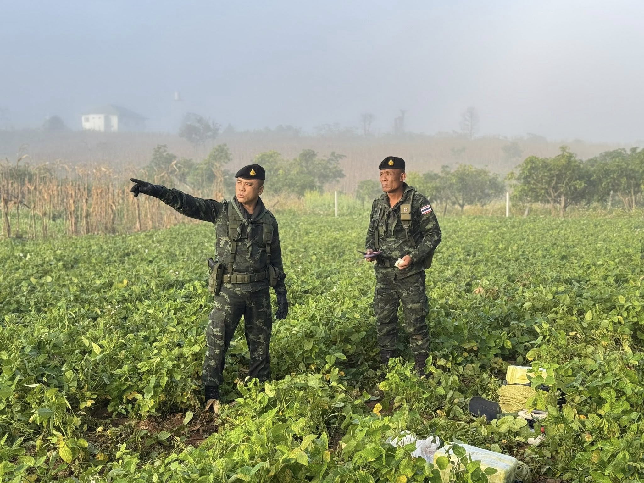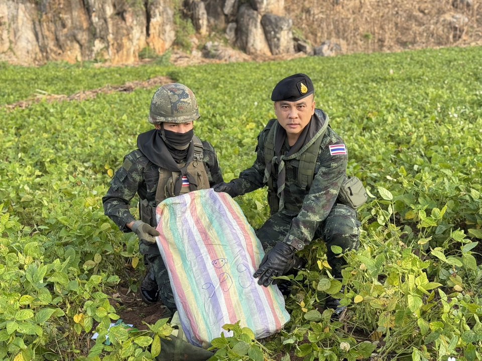 ต่อมาเมื่อวันที่ 8 ธ.ค.68 เวลา 0730 พ.อ.เดชาธร สายหยุด รอง ผบ.ฉก.ไชยานุภาพ นำกำลังพล เข้าตรวจสอบพื้นที่เกิดเหตุ บริเวณพื้นที่ เส้นทางท่อปะปาท้ายหมู่บ้าน บ.อรุโณทัย พิกัด MB 982822 ต.เมืองนะ อ.เชียงดาว จว.ช.ม. จากการตรวจสอบพื้นที่พบ เป้สะพายหลังสีเขียว จำนวน 18 เป้ ภายในบรรจุยาเสพติดให้โทษประเภทที่ 1 (ยาบ้า) จำนวน 1,800,000 เม็ด ลูกระเบิดแบบขว้าง 2 ลูก, โทรศัพท์ 1 เครื่อง และ ซองกระสุนพร้อมลูก 13 นัด ผลการปฏิบัติเป็นไปด้วยความเรียบร้อย