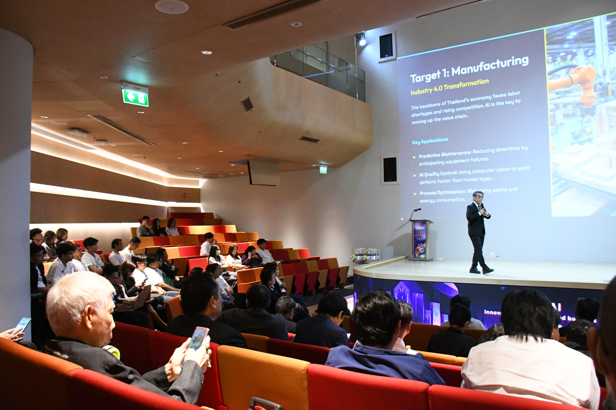 นายวีรชัย รัตนบานชื่น รองประธานกรรมการ กลุ่มธุรกิจเกษตรอุตสาหกรรมและอาหาร เครือเจริญโภคภัณฑ์ ในฐานะประธานเปิดงาน Power AI. ได้เน้นย้ำถึงประเด็นสำคัญว่า เป้าหมายของการสร้างบุคลากรทักษะสูงด้าน AI ไม่ใช่แค่แก้ปัญหาในโรงงาน แต่เพื่อ “ยกมาตรฐานอุตสาหกรรมเกษตร–อาหารของไทยทั้งระบบ” ผ่านการใช้นวัตกรรมที่พัฒนาโดยคนไทยเอง สร้างความยั่งยืนและเสริมความมั่นใจให้ภาคธุรกิจ งานครั้งนี้ยังเป็นเวทีเชื่อมความร่วมมือระหว่างภาครัฐ มหาวิทยาลัย และภาคเอกชน ซึ่งเป็นกุญแจสำคัญในการผลักดันอุตสาหกรรมไทยสู่การแข่งขันระดับสากลด้วย AI