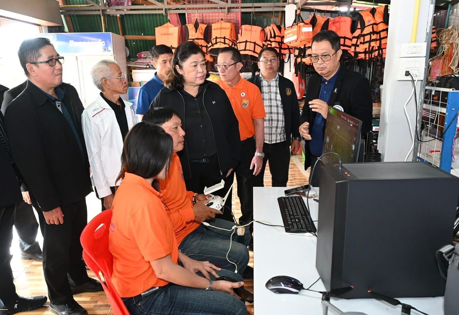 ดร.วิภารัตน์ ดีอ่อง ผู้อำนวยการสำนักงานการวิจัยแห่งชาติ กล่าวว่า (วช.) มุ่งสนับสนุนงานวิจัยนวัตกรรมที่นำไปใช้ประโยชน์ โดยผลงานที่สามารถยกระดับความปลอดภัยของประชาชนในพื้นที่เสี่ยงภัยภาคเหนือและภาคใต้ การนำเทคโนโลยีโดรนมาใช้ช่วยสำรวจ ประเมินสถานการณ์ และสนับสนุนการช่วยเหลือในพื้นที่เสี่ยงภัย จะเพิ่มความแม่นยำ ลดเวลาเข้าถึงพื้นที่ และเสริมความปลอดภัยให้เจ้าหน้าที่ได้อย่างมีประสิทธิภาพ การจัดตั้งศูนย์ศึกษาและพัฒนาระบบการใช้โดรนแห่งนี้ จึงเป็นกลไกสำคัญในการพัฒนาระบบปฏิบัติการโดรน ถ่ายทอดองค์ความรู้ให้เจ้าหน้าที่และอาสาสมัคร เสริมศักยภาพชุมชนต้นแบบด้านการเตรียมพร้อมรับมือภัยพิบัติ และขยายการใช้นวัตกรรมไปยังพื้นที่เสี่ยงภัยอื่นทั้งในภาคเหนือและภาคใต้