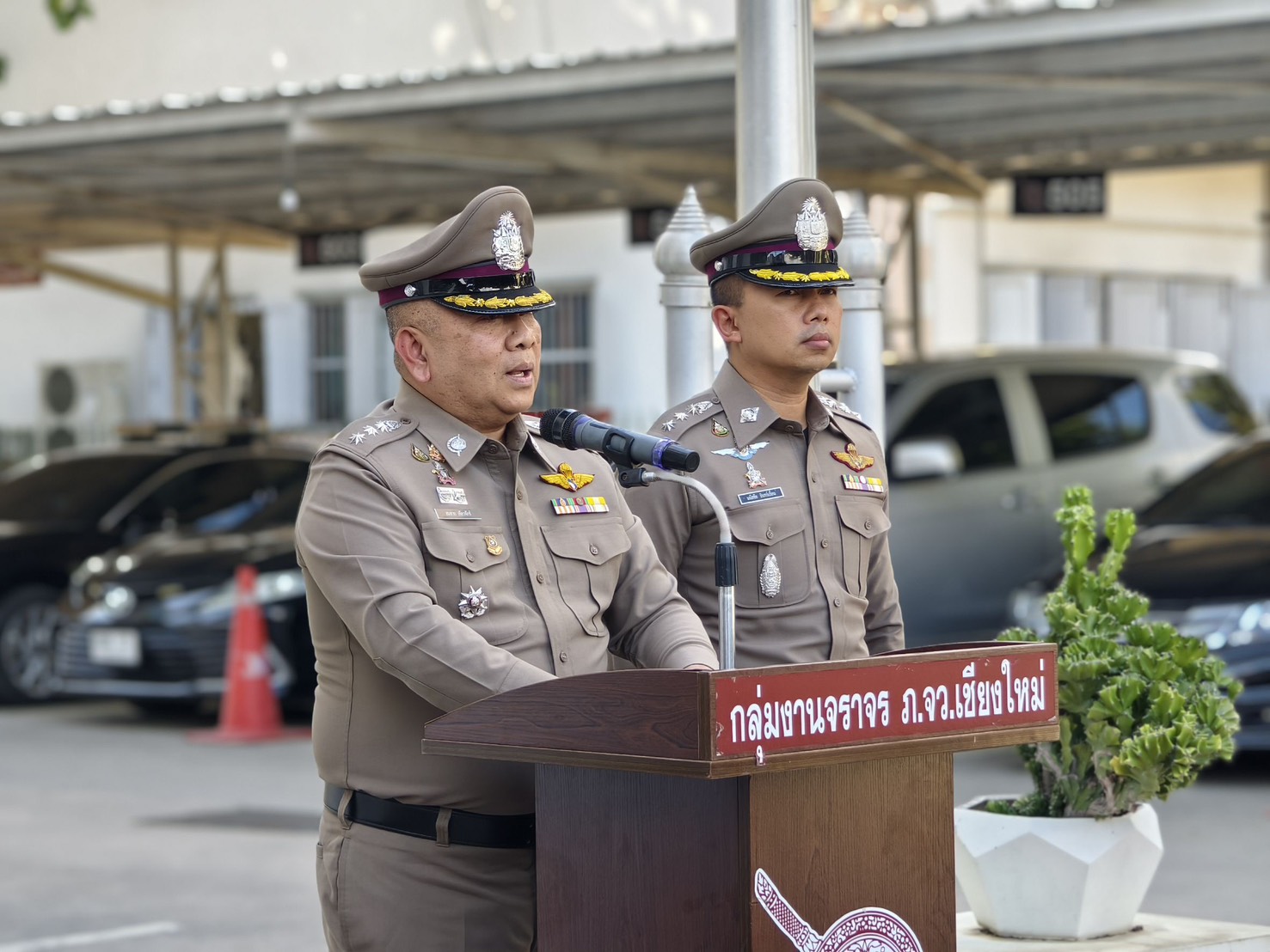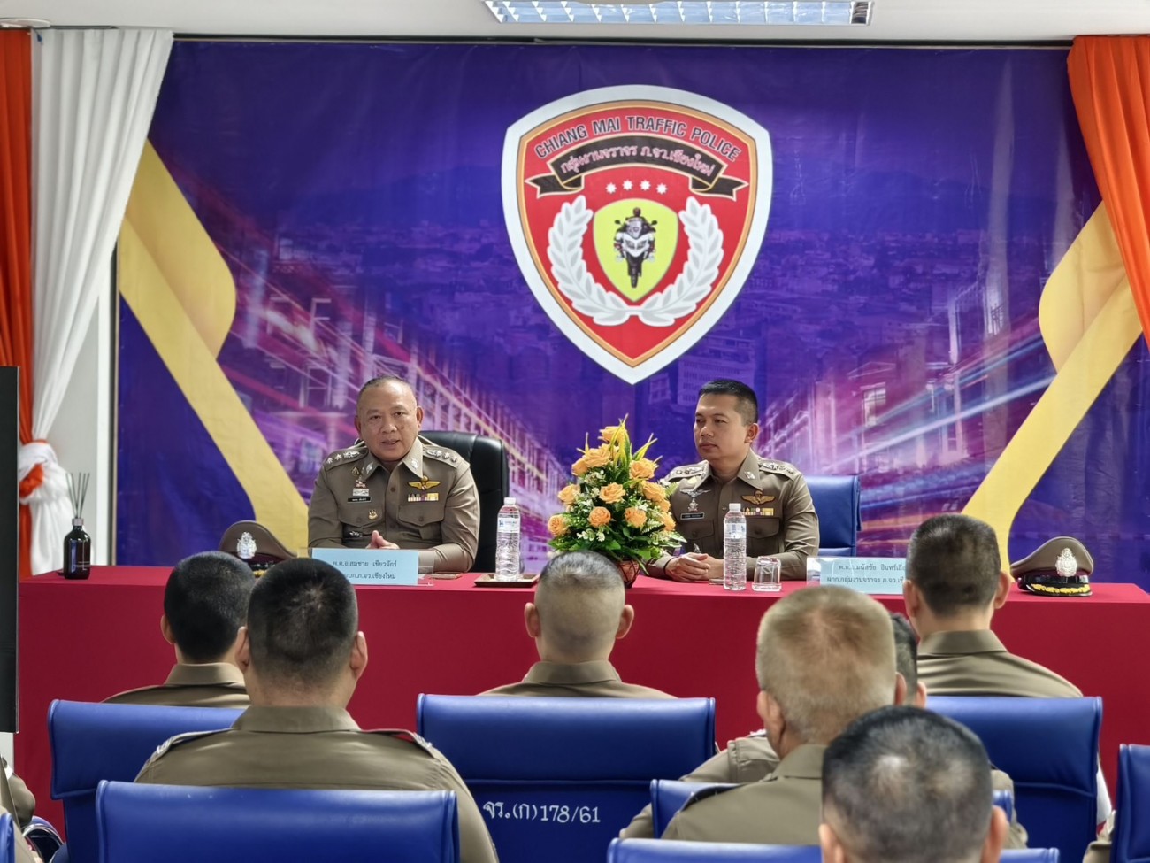 พล.ต.ต.ยุทธนา แก่นจันทร์ ผบก.ภ.จว.เชียงใหม่ มอบหมายงาน พ.ต.อ.สมชาย เขียวจักร์ รอง ผบก. ตรวจงานจราจร