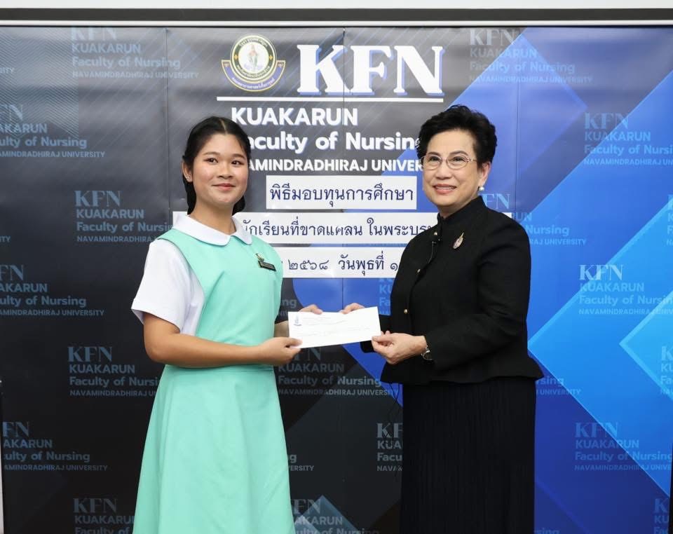 เมื่อวันที่ 17 ธันวาคม 2568 มูลนิธิช่วยนักเรียนที่ขาดแคลน ในพระบรมราชินูปถัมภ์ (ม.น.ข.) ได้จัดพิธีมอบทุนการศึกษาให้แก่นักศึกษาหลักสูตรประกาศนียบัตรผู้ช่วยพยาบาล คณะพยาบาลศาสตร์เกื้อการุณย์ มหาวิทยาลัยนวมินทราธิราช ณ ห้อง 6510 ชั้น 5 อาคารคณะพยาบาลศาสตร์เกื้อการุณย์