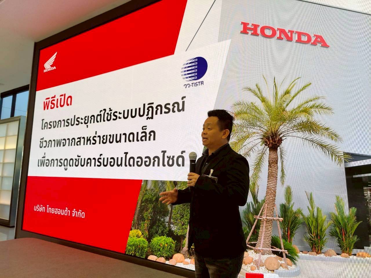 วว. จับมือบริษัท ไทยฮอนด้าฯ เปิดตัวโครงการบริการวิจัย “ระบบปฏิกรณ์ชีวภาพจากสาหร่ายขนาดเล็กดูดซับ CO2 และยกระดับคุณภาพอากาศพื้นที่สูบบุหรี่”