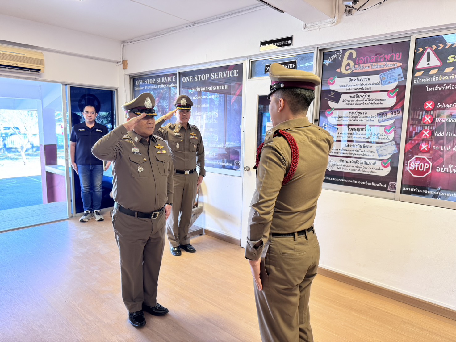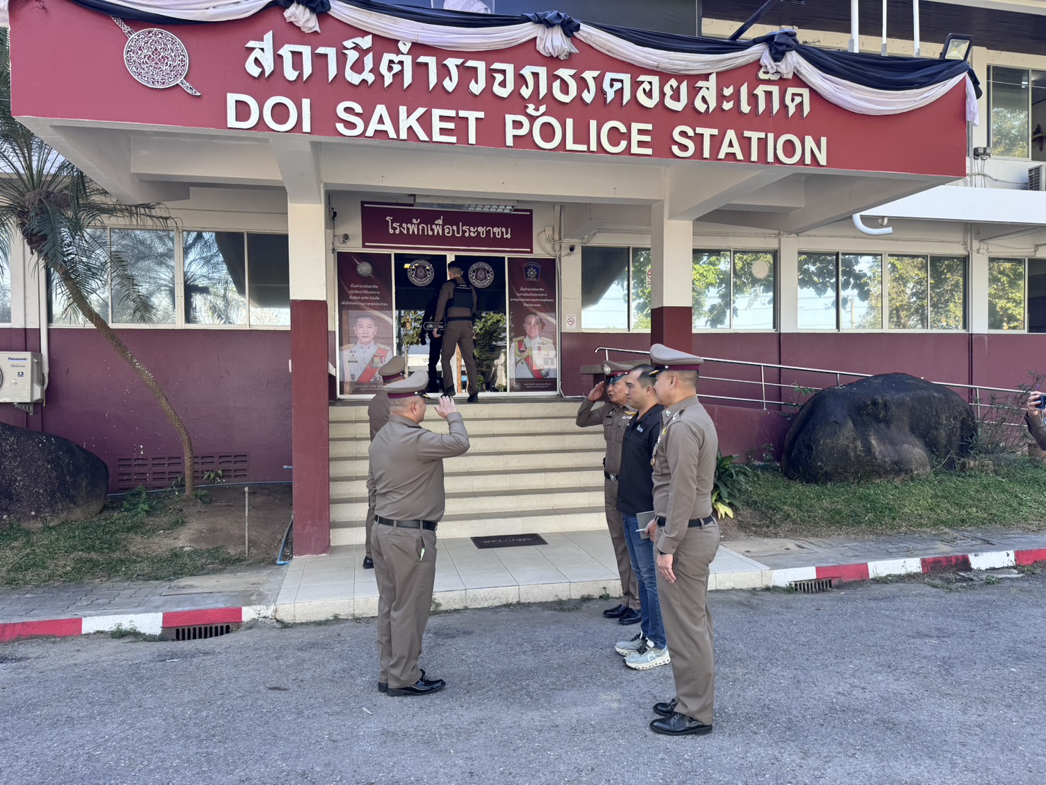 พ.ต.อ.สมชาย เขียวจักร์ รอง ผบก.ภ.จว.เชียงใหม่ ได้มาตรวจเยี่ยม สภ.ดอยสะเก็ด พบ พ.ต.อ.ศุภชัย จันทรา ผกก.สภ.ดอยสะเก็ด, พ.ต.ท.วิมล วงศ์สิงห์ รอง ผกก.ป.สภ.ดอยสะเก็ด พร้อมกำลังข้าราชการตำรวจ เสมียนประจำวัน สิบเวร พนักงานวิทยุ อยู่ปฏิบัติหน้าที่เรียบร้อย