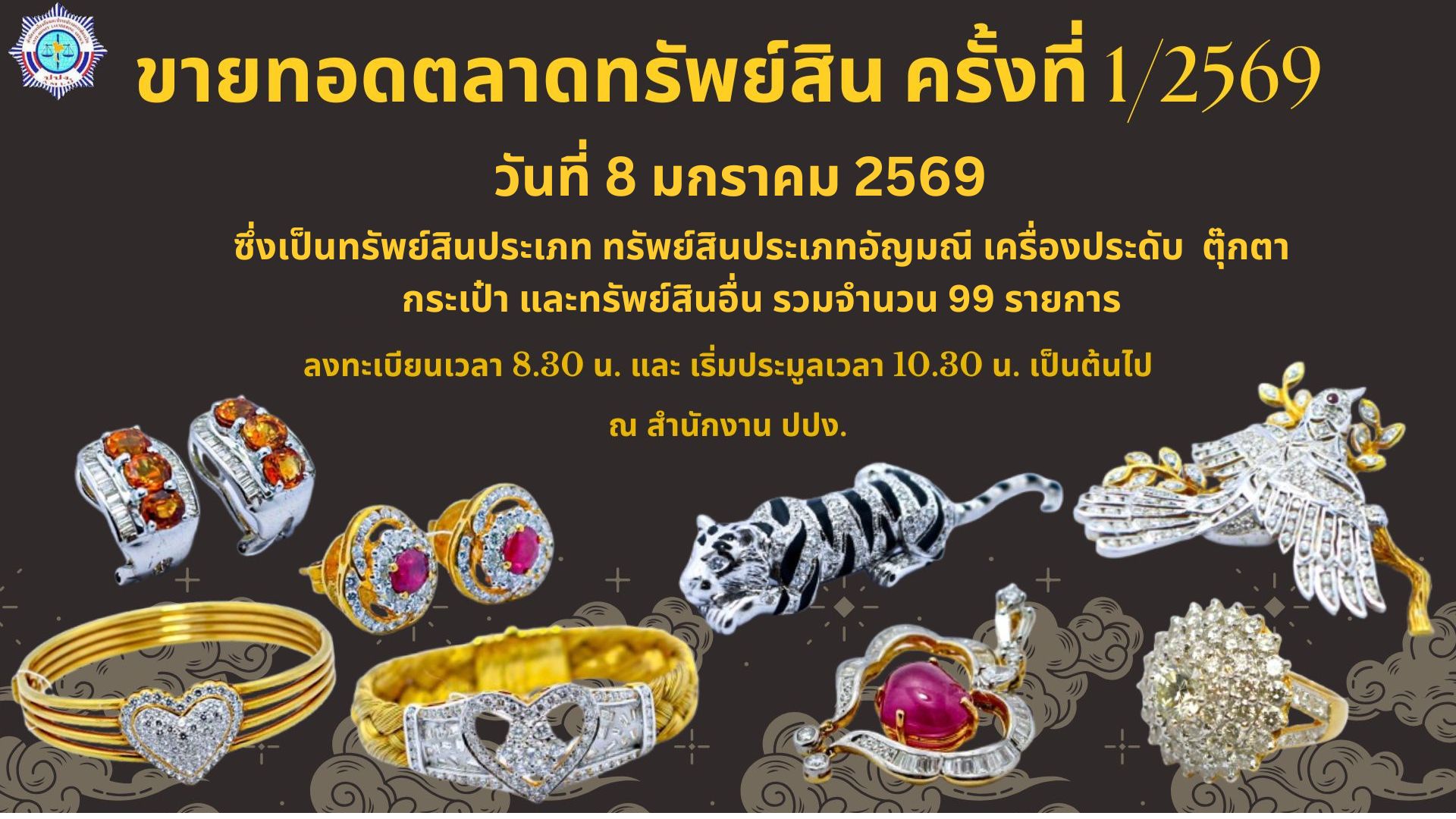 ปปง. ขายทอดตลาดทรัพย์สินประเภทอัญมณี เครื่องประดับ ตุ๊กตา กระเป๋า และทรัพย์สินอื่น ในวันที่ 8 มกราคม 2569 นี้