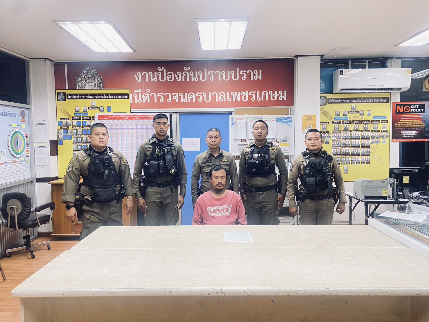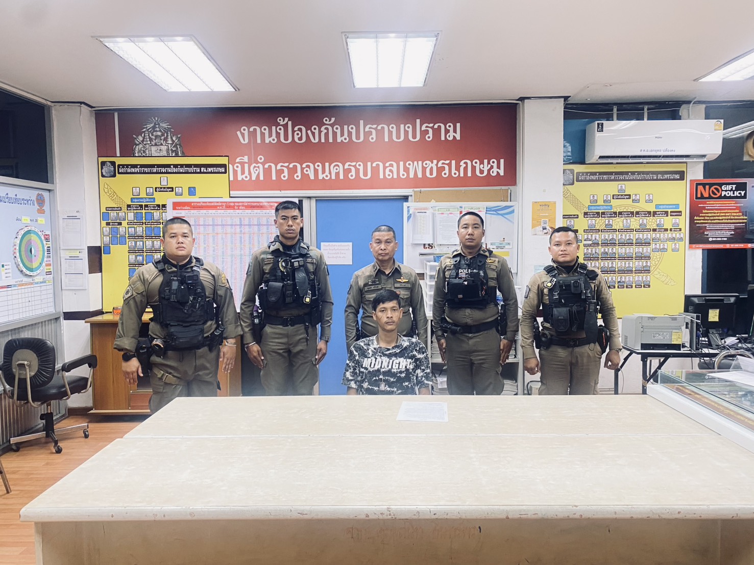 วันที่ 5 มกราคม 2568 เวลาประมาณ 22.30 น. เจ้าพนักงานตำรวจชุดจับกุมภายใต้การอำนวยการสั่งการของ พ.ต.อ.ปราโมทย์ จันทร์บุญแก้ว ผกก.สน.เพชรเกษม, พ.ต.ท.กมเลศ พูลสุขโข รอง ผกก.ป.สน.เพชรเกษม, พ.ต.ท.สุนทร กรีวาส สวป.สน.เพชรเกษม เจ้าหน้าที่ชุดจับกุมสน.เพชรเกษม พ.ต.ท.ธวัชชัย ทิพย์วงษ์ สว.สส.สน.เพชรเกษม, ร.ต.ท.จิรสิน เกตุศักดิ์ รอง สว(ป.) สน.เพชรเกษม, จ.ส.ต.ภูพิพัฒน์ ประเมินชัย, ส.ต.อ.จักรกรินทร์ เลอสวรรค์วารี, ส.ต.อ.พีรพงษ์ สดมพฤกษ์, ส.ต.อ.สุรสิทธิ์ ศรชัยญาติ, ส.ต.ท.ศิขรินทร์ หงษ์สุดตา, ส.ต.ต.กฤติพงศ์ พรัมรัตนพงศ์ ผบ.หมู่ ป.สน.เพชรเกษม ได้ร่วมกันจับกุม นายกิติพงษ์ ทองหนูเกตุ อายุ 39 ปี อยู่บ้านเลขที่ 202/1 ซอยบางแค 14 แขวงบางแค เขตบางแค กรุงเทพฯ ข้อหา “ร่วมกันทำร้ายร่างกายผู้อื่นเป็นเหตุให้ได้รับอันตรายแก่กายหรือจิตใจ” ตามหมายจับ ศาลแขวงบางบอน ที่ 262/2567 ลงวันที่ 15 สิงหาคม 2567 และ นายวุฒิสิทธิ์ อุ่นสนิท อายุ 28 ปี อยู่บ้านเลขที่ 182 ซอยบางแค 14 แขวงบางแค เขตบางแค กรุงเทพฯ ข้อหา “ร่วมกันทำร้ายร่างกายผู้อื่นเป็นเหตุให้ได้รับอันตรายแก่กายหรือจิตใจ” ตามหมายจับ ศาลแขวงบางบอน ที่ 263/2567 ลงวันที่ 15 สิงหาคม 2567 โดยจับกุมได้ที่ท้ายซอยกรพิทักษ์ ซอยบางแค 14 แขวงบางแค เขตบางแค กรุงเทพมหานคร