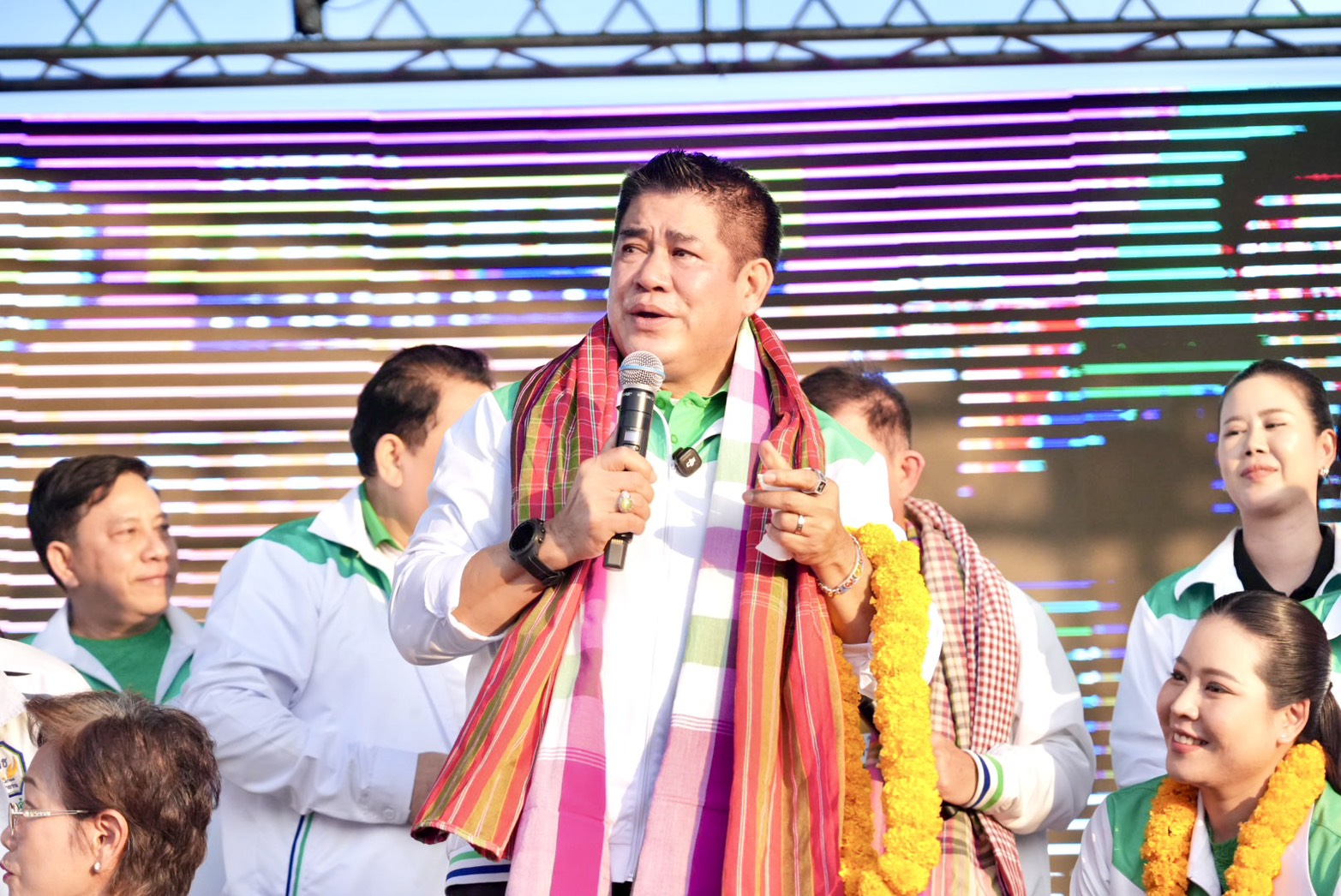 ก่อนขึ้นเวทีปราศรัย ร้อยเอกธรรมนัส พร้อม ดร.ธนกฤต และทีมพรรคกล้าธรรม ได้เดินพบปะพี่น้องประชาชนอย่างใกล้ชิด โดยชาวบ้านหลายคนนำพวงมาลัยหรือผ้าขาวม้ามาให้คล้องคอ และจับไม้จับมือต้อนรับพรรคกล้าธรรมอย่างอบอุ่น โดยร้อยเอกธรรมนัส ยืนยันกับพี่น้องประชาชนว่า พรรคกล้าธรรม ไม่มีนโยบายขายฝัน มีแต่นโยบายที่จับต้องได้
