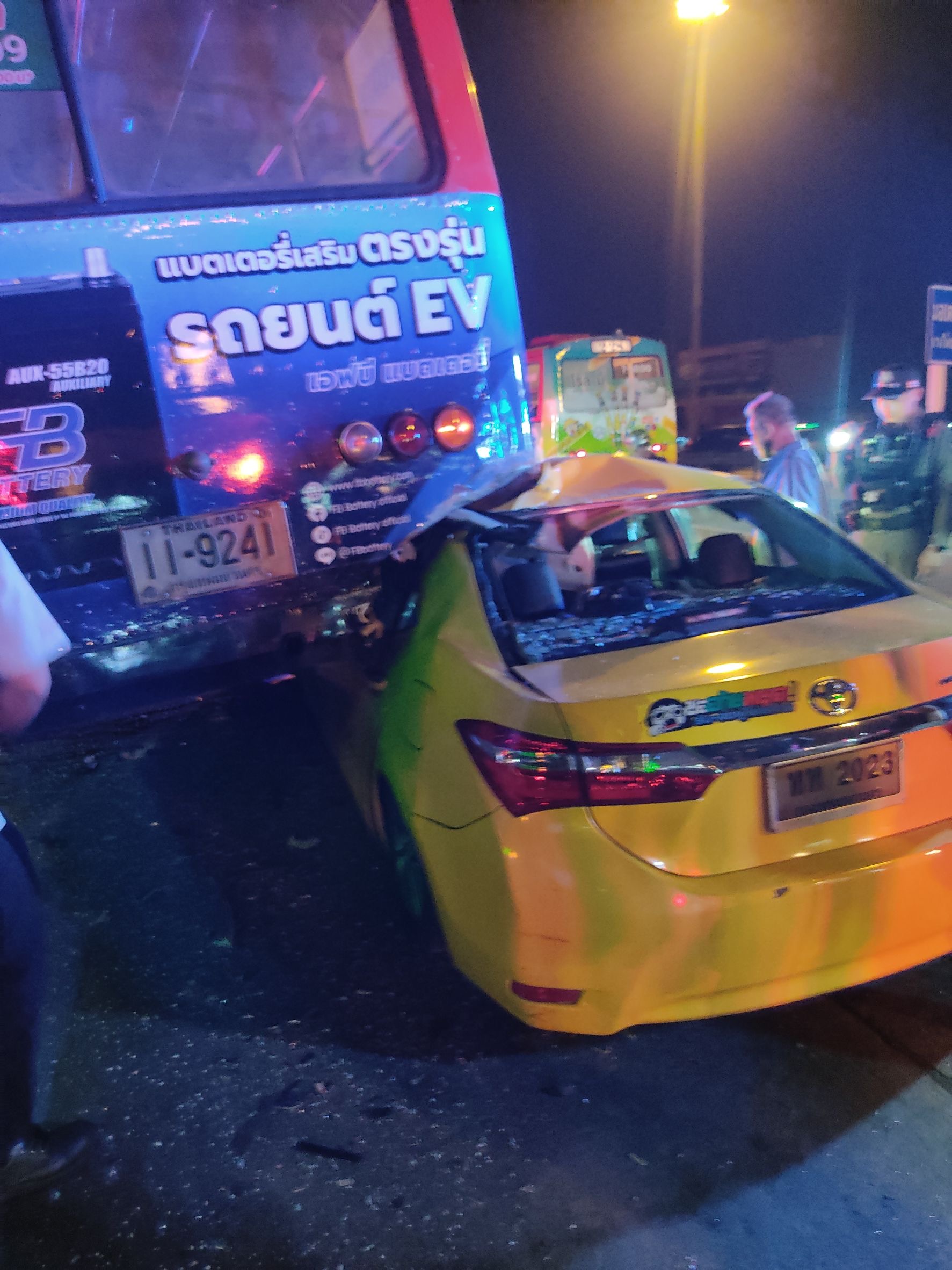 นอกจากนี้ ยังมีผู้โดยสารในรถแท็กซี่ คือ นายทัศนัย (ขอสงวนนามสกุล) อายุ 48 ปี ได้รับบาดเจ็บ ถูกนำตัวส่งโรงพยาบาล โดยทั้งคนขับและผู้โดยสารมีอาการบาดเจ็บรุนแรง ต้องรักษาตัวต่อเนื่อง