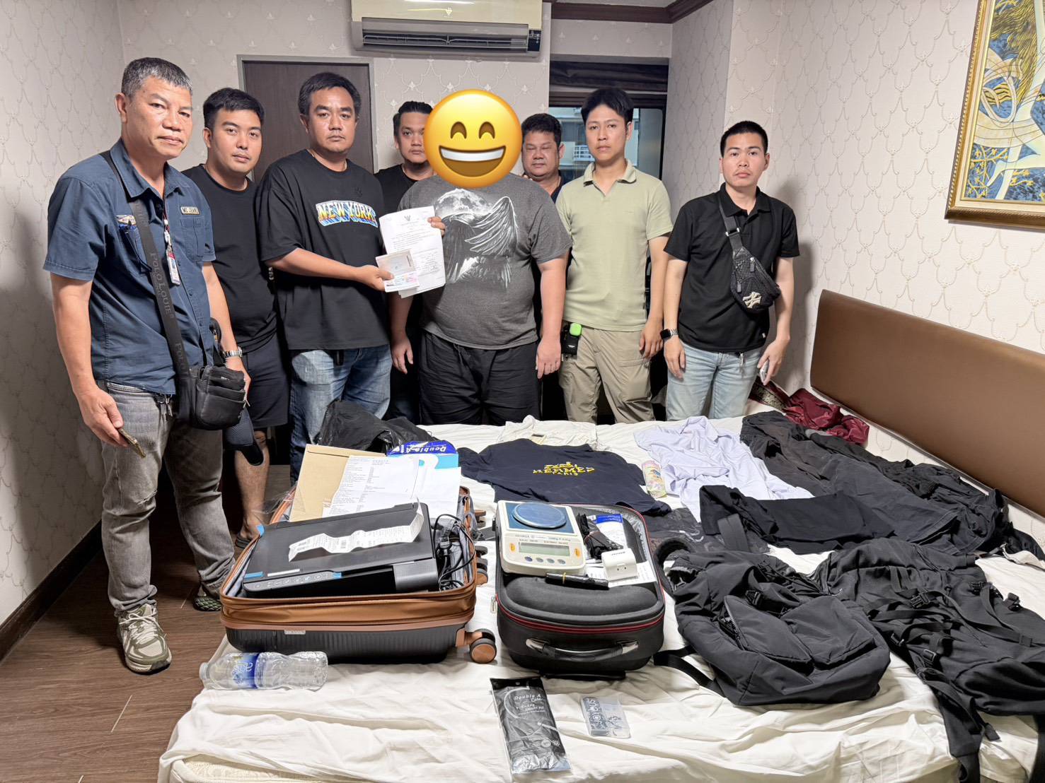 ต่อมาเจ้าหน้าที่ฝ่ายสืบสวนได้ตรวจสอบพบว่า ผู้ต้องหา ซึ่งเป็นบุคคลตามหมายจับได้พักอยู่ที่โรงแรมแห่งหนึ่งย่านรามคำแหง จึงเดินทางไปตรวจสอบ พบตัวไปตรวจค้นห้องพักของโรงแรม พบของกลางภายในห้องคือ