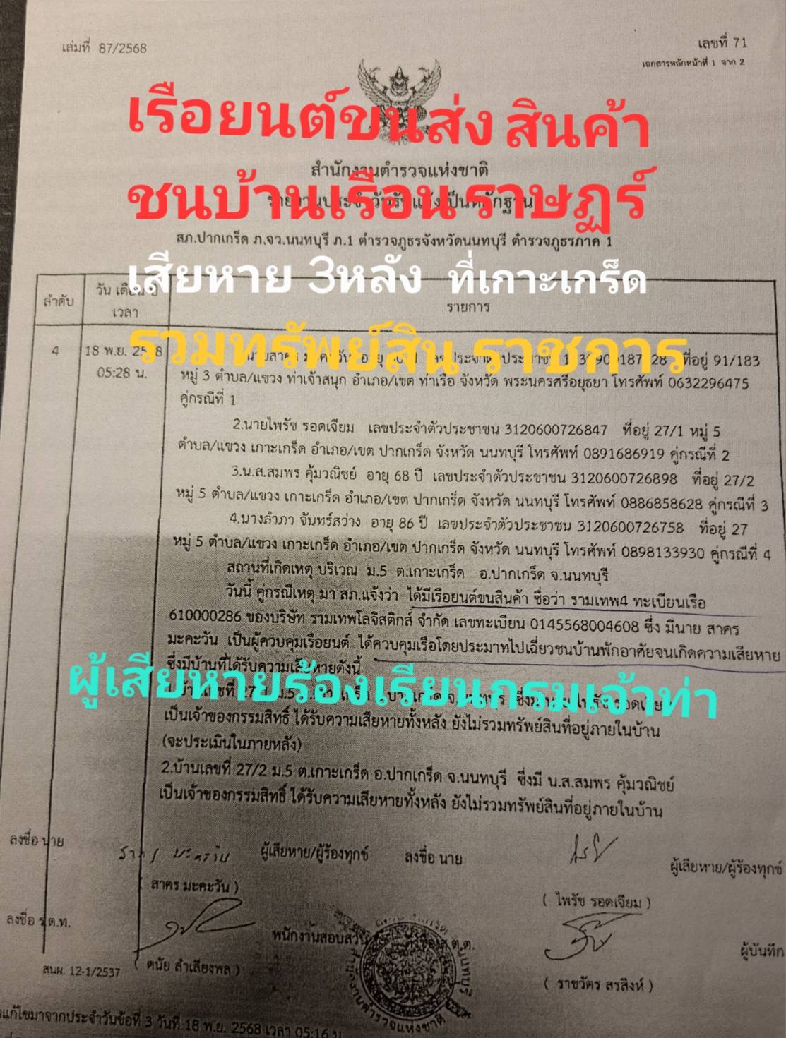 เรือยนต์ชนบ้านเรือนเสียหาย ที่เกาะเกร็ด นนทบุรี ผ่านมาข้ามปี “กรมเจ้าท่า” ยังไม่ทำอะไร ?