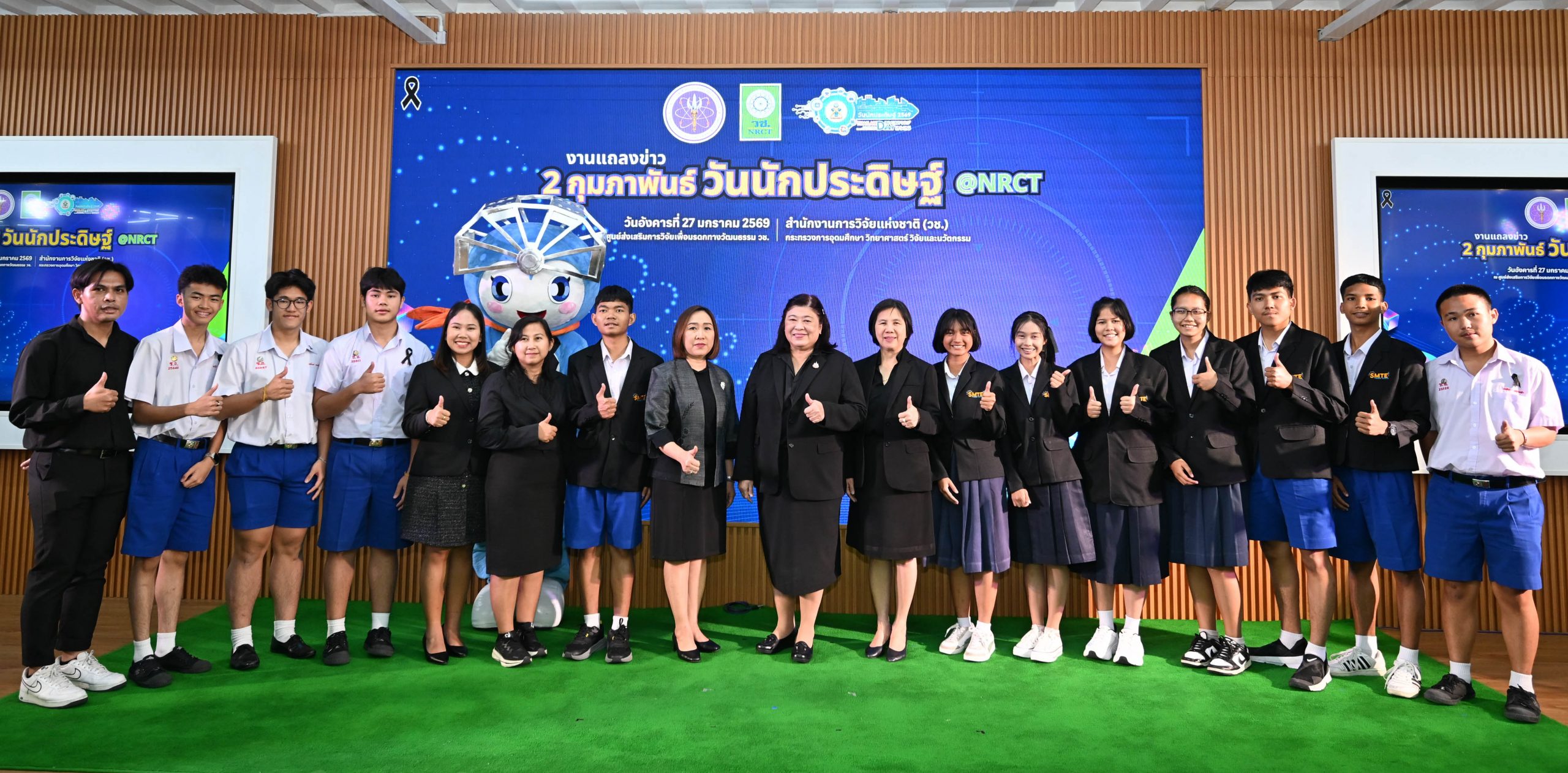 เมื่อวันที่ 27 มกราคม 2569 สำนักงานการวิจัยแห่งชาติ (วช.) กระทรวงการอุดมศึกษา วิทยาศาสตร์ วิจัยและนวัตกรรม (อว.) จัดงานแถลงข่าว “2 กุมภาพันธ์ วันนักประดิษฐ์ @NRCT” โดย ดร.วิภารัตน์ ดีอ่อง ผู้อำนวยการสำนักงานการวิจัยแห่งชาติ (ผวช.) เป็นประธาน พร้อมด้วย คณะนักประดิษฐ์ผู้ได้รับรางวัลการประกวดสิ่งประดิษฐ์และนวัตกรรมระดับเยาวชน ทั้งในระดับประถมศึกษาตอนปลาย, ระดับมัธยมศึกษา, ระดับอาชีวศึกษา, ระดับอุดมศึกษา และมหกรรมการประกวดสิ่งประดิษฐ์และนวัตกรรมนานาชาติ ผู้บริหารหน่วยงาน คณะผู้บริหาร (วช.) เข้าร่วมในพิธี ณ ศูนย์ส่งเสริมการวิจัยเพื่อมรดกทางวัฒนธรรม