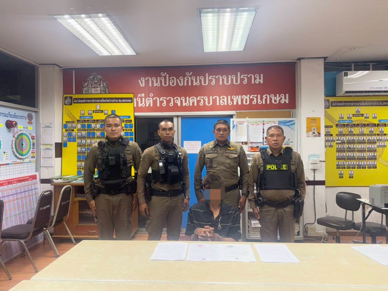 เมื่อวันที่ 31 มกราคม 2569 เวลาประมาณ 22.30 น. ภายใต้การอำนวยการของ พ.ต.อ.ปราโมทย์ จันทร์บุญแก้ว ผกก.สน.เพชรเกษม, พ.ต.ท.กมเลศ พูลสุขโข รอง ผกก.ป. สน.เพชรเกษม, พ.ต.ท.ธีระเดช เพชรศิริ สวป.สน.เพชรเกษม เจ้าพนักงานผู้จับกุม ร.ต.ท.ภูวดล อำท้าว รอง สว(ป.)สน.เพชรเกษม, จ.ส.ต.วิษณุ อยู่ทา, ส.ต.ท.กฤษณะ แตงลี่, ส.ต.ต.นรินทร์ พรมวัน ผบ.หมู่(ป.)สน.เพชรเกษม ได้ร่วมกันจับกุมผู้ต้องหา ที่บริเวณตู้เอทีเอ็มธนาคารกสิกรไทย ปากซอยหมู่บ้านมั่งมีซิตี้บางแค แขวงบางแค เขตบางแค กรุงเทพฯ ชื่อนายสมพร (สงวนนามสกุล) อายุ 40 ปี อยู่บ้านเลขที่ 443 หมู่ที่ 13 ต.สมสะอาด อ.เดชอุดม จ.อุบลราชธานี ในข้อหา