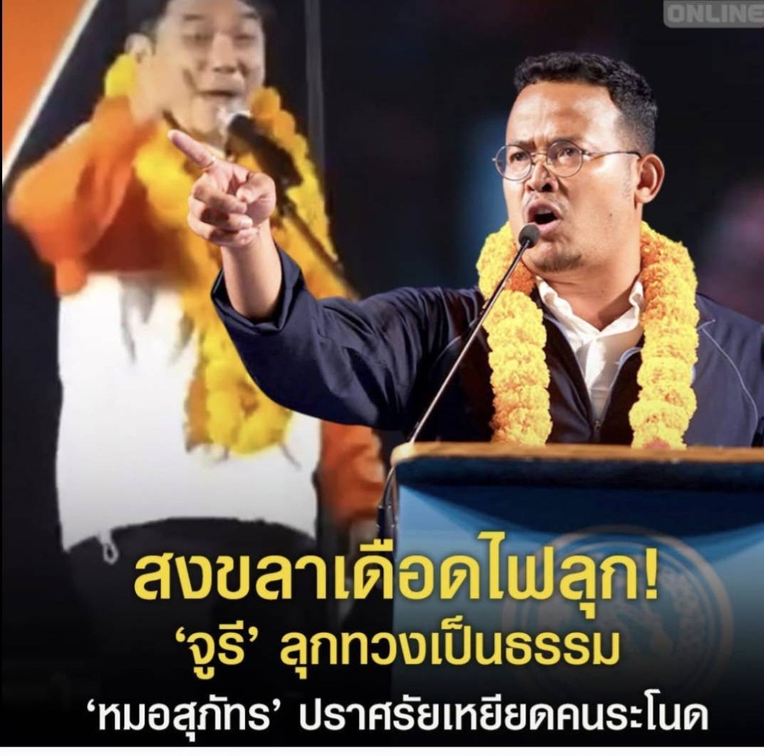 วันนี้ “หมอสุภัทร์” พรรคสีส้ม โจมตี “จุรี นุ่มแก้ว” ผู้สมัคร พรรคสีฟ้า เช่นกันว่า เป็น “ชาวระโนด” ไม่ใช่ชาวหาดใหญ่!… คนหาดใหญ่ ต้องเลือก “คนหาดใหญ่ !”…..ทั้งๆ ที่ใครก็ได้ ขันอาสามาเป็นตัวแทนพื้นที่ รักษาผลประโยชน์ และสร้างเจริญ ให้กับชาติบ้านเมือง