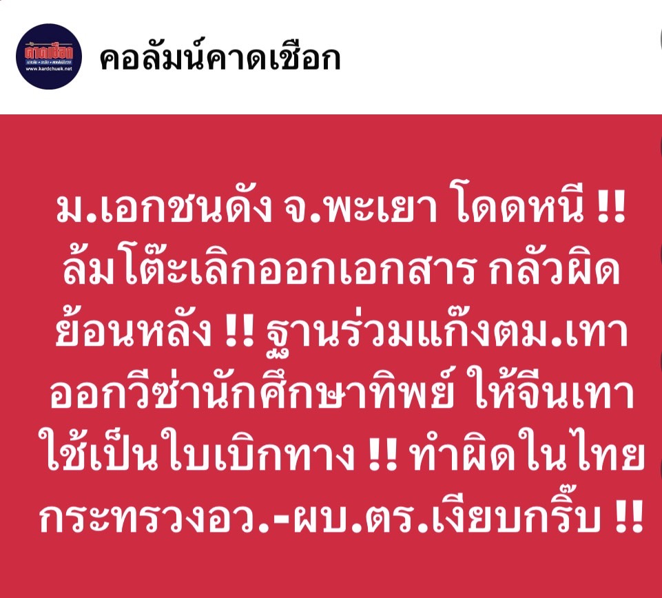 ม.เอกชนดัง จ.พะเยา โดดหนี !! ล้มโต๊ะเลิกออกเอกสาร กลัวผิดย้อนหลัง !! ฐานร่วมแก๊ง ตม.เทา ออกวีซ่านักศึกษาทิพย์ ให้จีนเทาใช้เป็นใบเบิกทาง !! ทำผิดในไทย กระทรวง อว.-ผบ.ตร.เงียบกริ๊บ !!