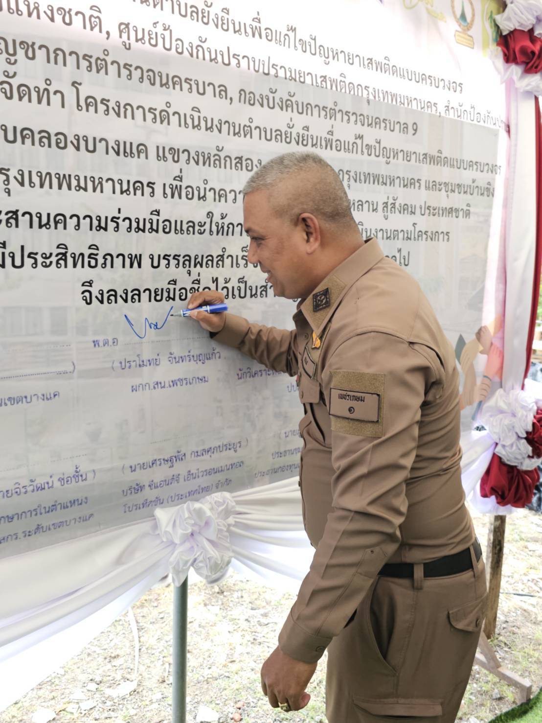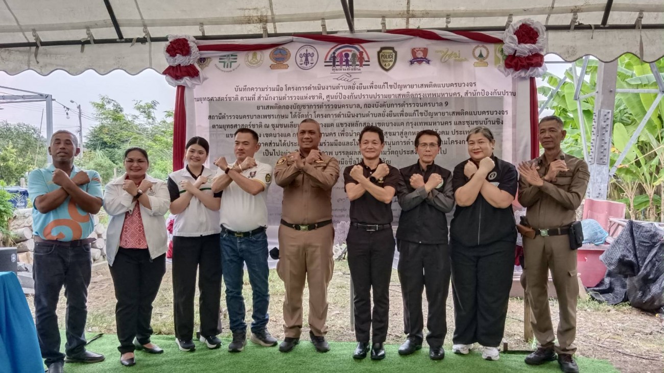 วันนี้ (12 ก.พ.69) เวลา 17.00 น. สถานีตำรวจนครบาลเพชรเกษม พ.ต.อ.ธีระชัย เด็ดขาด รอง ผบก.น.9 ประธานในพิธี พ.ต.อ.ปราโมทย์ จันทร์บุญแก้ว ผกก.สน.เพชรเกษม นายเทียนชัย วงศ์สุวรรณ ผู้อำนวยการเขตบางแค พ.ต.ท.กมเลศ พูลสุขโข รอง ผกก.ป.สน.เพชรเกษม พ.ต.ท.ธวัชชัย ทิพย์วงษ์ สว.สืบสวน สน.เพชรเกษม พ.ต.ต.บัญชา แก้วไทรท้วม สวป.(ชส.) สน.เพชรเกษม นายบุญส่ง ไตรขันธ์ นักวิเคราะห์นโยบายและแผนชำนาญการ ปปส.กทม. นายวรเศรษฐ์ กุศลธรรมรัตน์ กต.ตร.สน.เพชรเกษม น.ส.รวิพร สวัสดิสวนีย์ ผู้แทน ศูนย์บริการสาธารณสุข 40 บางแค นายจิรวัฒน์ ช่อชั้น รักษาการในตำแหน่ง ผอ.สกร.ระดับเขตบางแค นายเศรษฐพัส กมลศุภประยูร ผจก.ฝ่ายมวลชนสัมพัธ์ บริษัทซีแอนด์ เอ็นไวรอนเมนทอลโปรเท็คชัน (ประเทศไทย) จำกัด นายภูเมธ กมลศภกิตติ์ ประธานชุมชนเลียบคลองบางแค นางนรินทร์ อ๊อกฉิม ประธานชุมชนบ้านขิง
