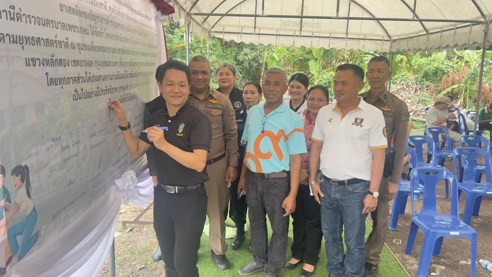 ร่วมพิธีเปิดโครงการ ดำเนินงานชุมชนยั่งยืนเพื่อแก้ไขปัญหายาเสพติดแบบครบวงจรตามยุทธศาสตร์ชาติ และบันทึกความร่วมมือ MOU ในการแก้ไขปัญหายาเสพติดในชุมชน ณ ชุมชนเลียบคลองบางแค ถ.เพชรเกษม 63 แขวงหลักสอง เขตบางแค กทม.