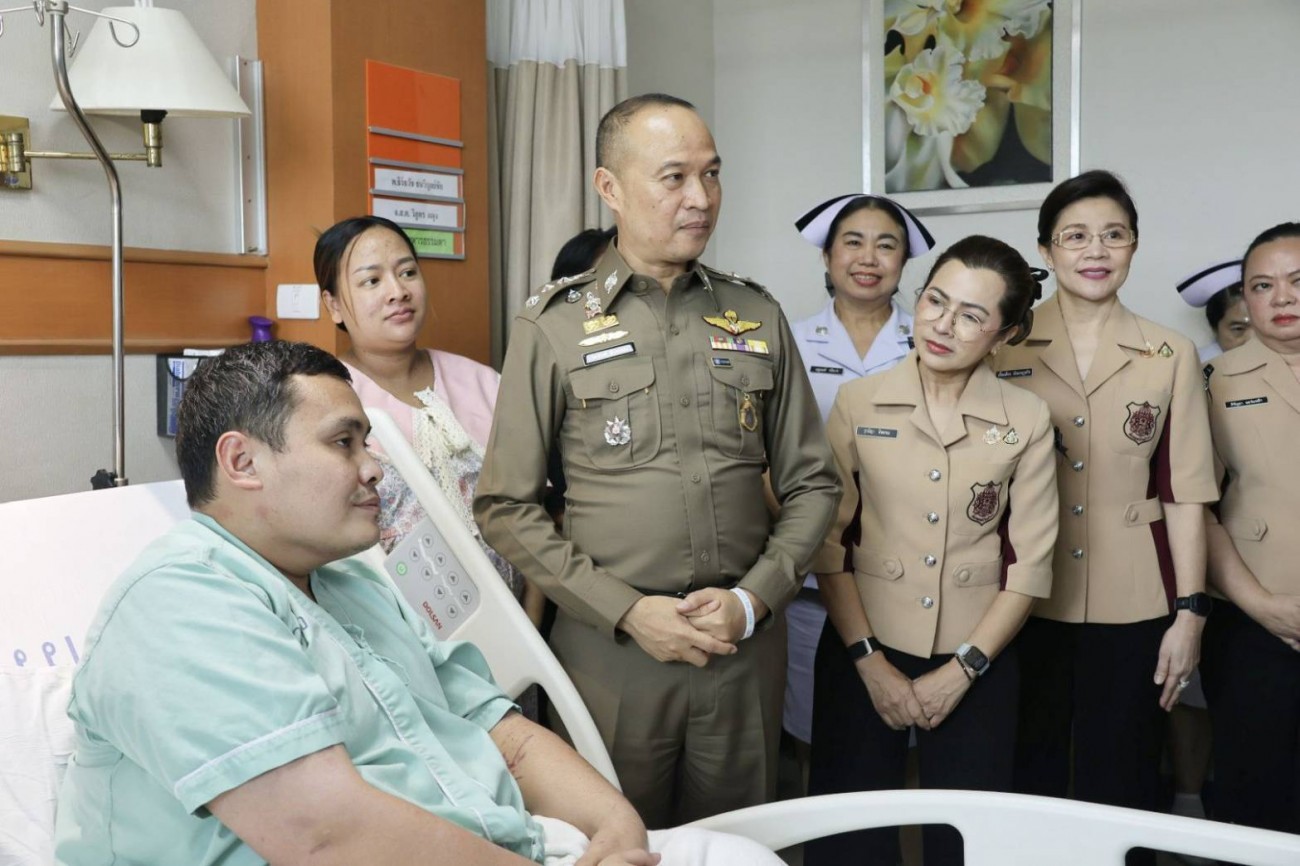 รองจเรตำรวจแห่งชาติ พร้อมกรรมการบริหารสมาคมแม่บ้านตำรวจ เยี่ยมให้กำลังใจข้าราชการตำรวจสังกัด บช.น. ที่บาดเจ็บจากการปฏิบัติหน้าที่
