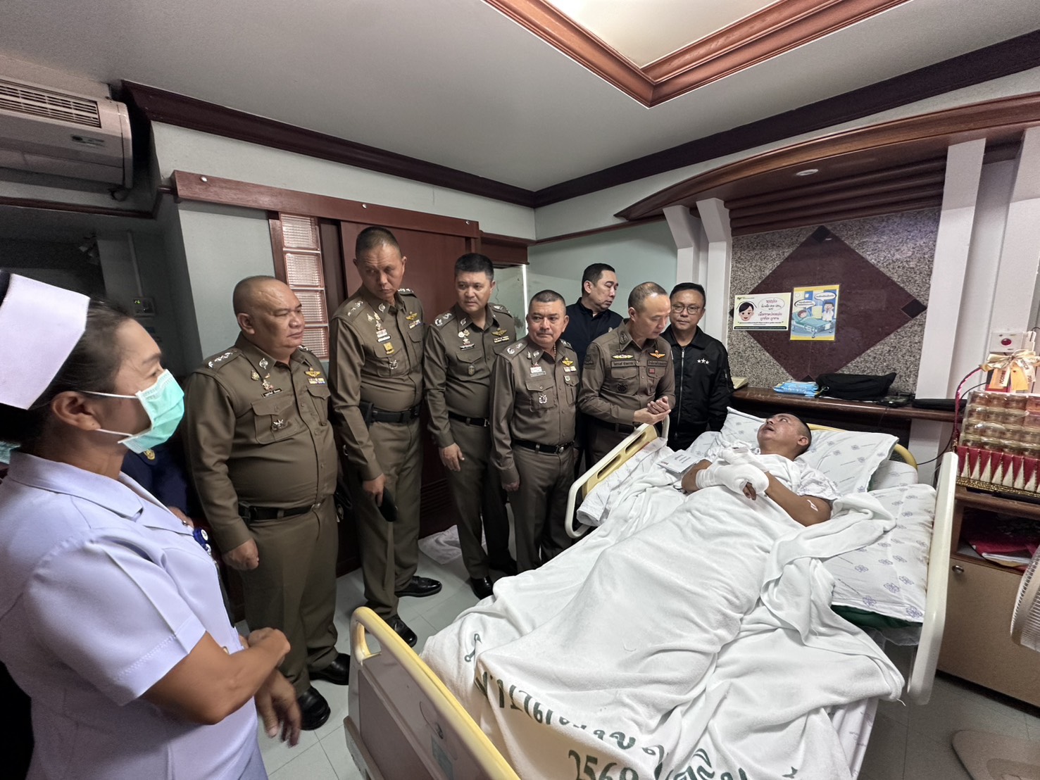 บรรยากาศการเข้าเยี่ยมเป็นไปด้วยความอบอุ่น สะท้อนถึงความห่วงใยและสายใยความเป็นครอบครัวเดียวกันของข้าราชการตำรวจ พร้อมส่งพลังใจให้ ดาบตำรวจพิชิตพาล เวชชาชีวี ฟื้นตัวโดยเร็ว และกลับมาแข็งแรงในเร็ววัน