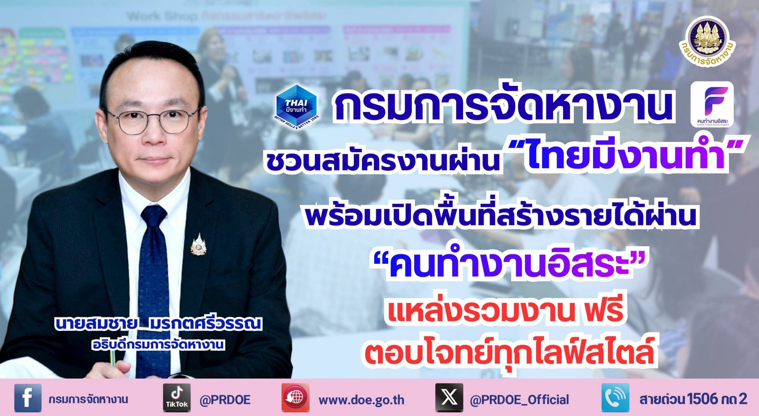 กรมการจัดหางาน ชวนสมัครงานผ่าน ‘ไทยมีงานทำ’  สายสกิลห้ามพลาด ‘คนทำงานอิสระ’ แหล่งรวมงานอิสระ-ฟรีที่ตอบโจทย์ทุกไลฟ์สไตล์