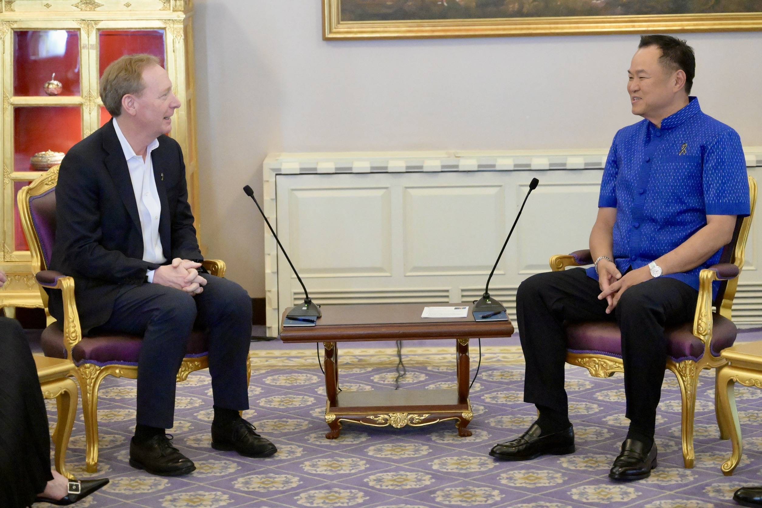 วันอังคารที่ 31 มีนาคม 2569 เวลา 09.00 น. ณ ห้องสีม่วง ตึกไทยคู่ฟ้า ทำเนียบรัฐบาล นายแบรด สมิธ (Mr. Brad Smith) รองประธานกรรมการบริหารและประธาน บริษัท ไมโครซอฟท์ คอร์ปอเรชั่น และคณะ เข้าเยี่ยมคารวะนายอนุทิน ชาญวีรกูล นายกรัฐมนตรีและรัฐมนตรีว่าการกระทรวงมหาดไทย ในโอกาสเยือนประเทศไทย สรุปสาระสำคัญของการหารือ ดังนี้