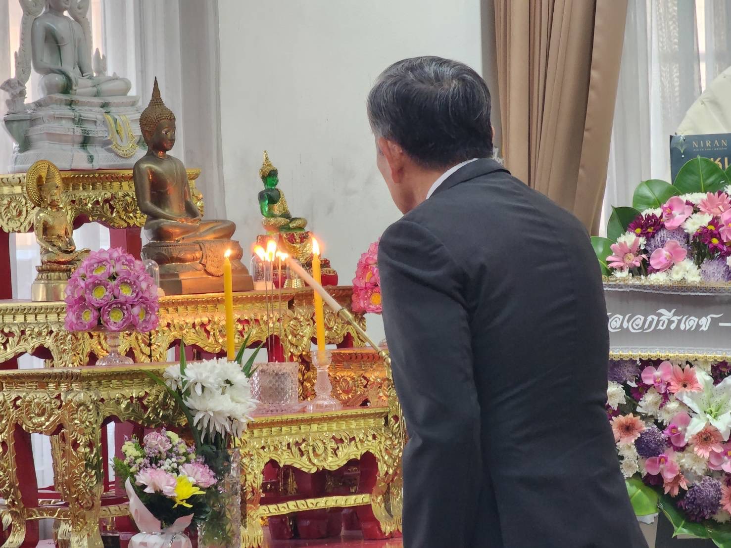 รวมถึง กรรมการมูลนิธิฯ ศิษย์เก่าและปัจจุบัน หลักสูตรผู้นำพอเพียงเพื่อความมั่นคง ร่วมฟังสวดอภิธรรมและร่วมแสดงความอาลัย
