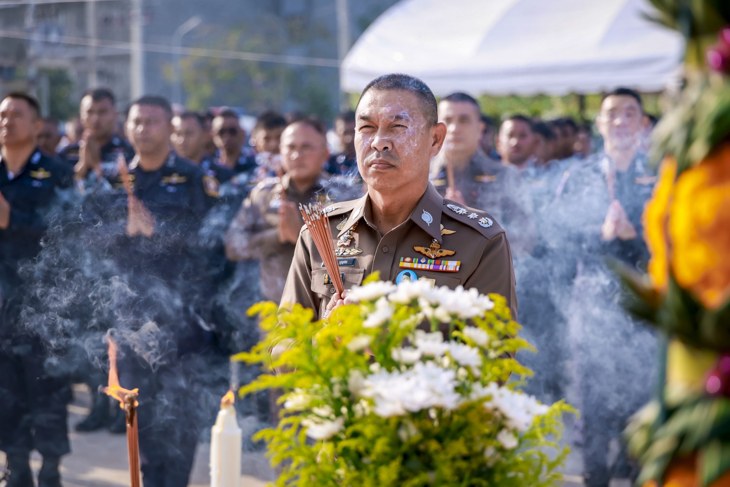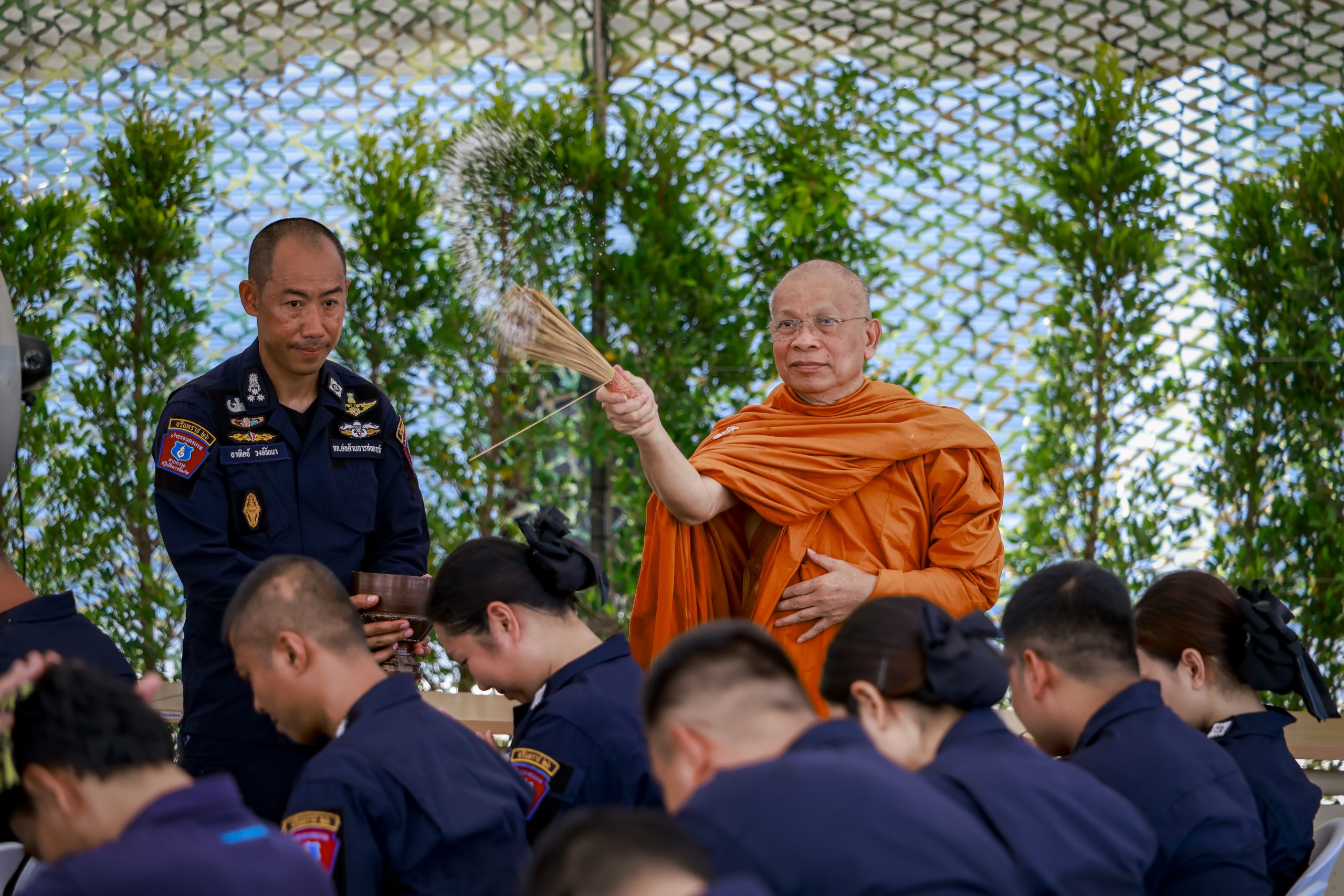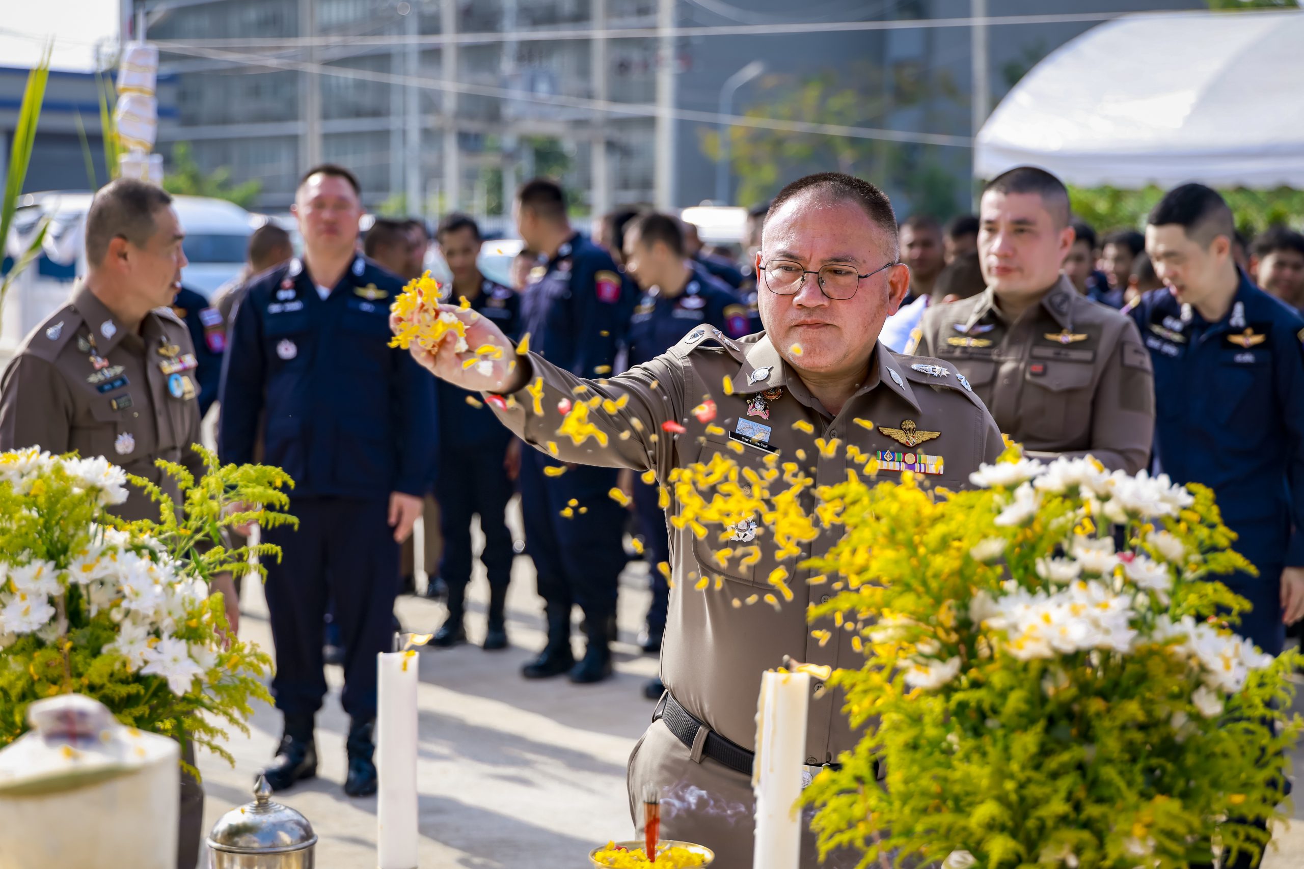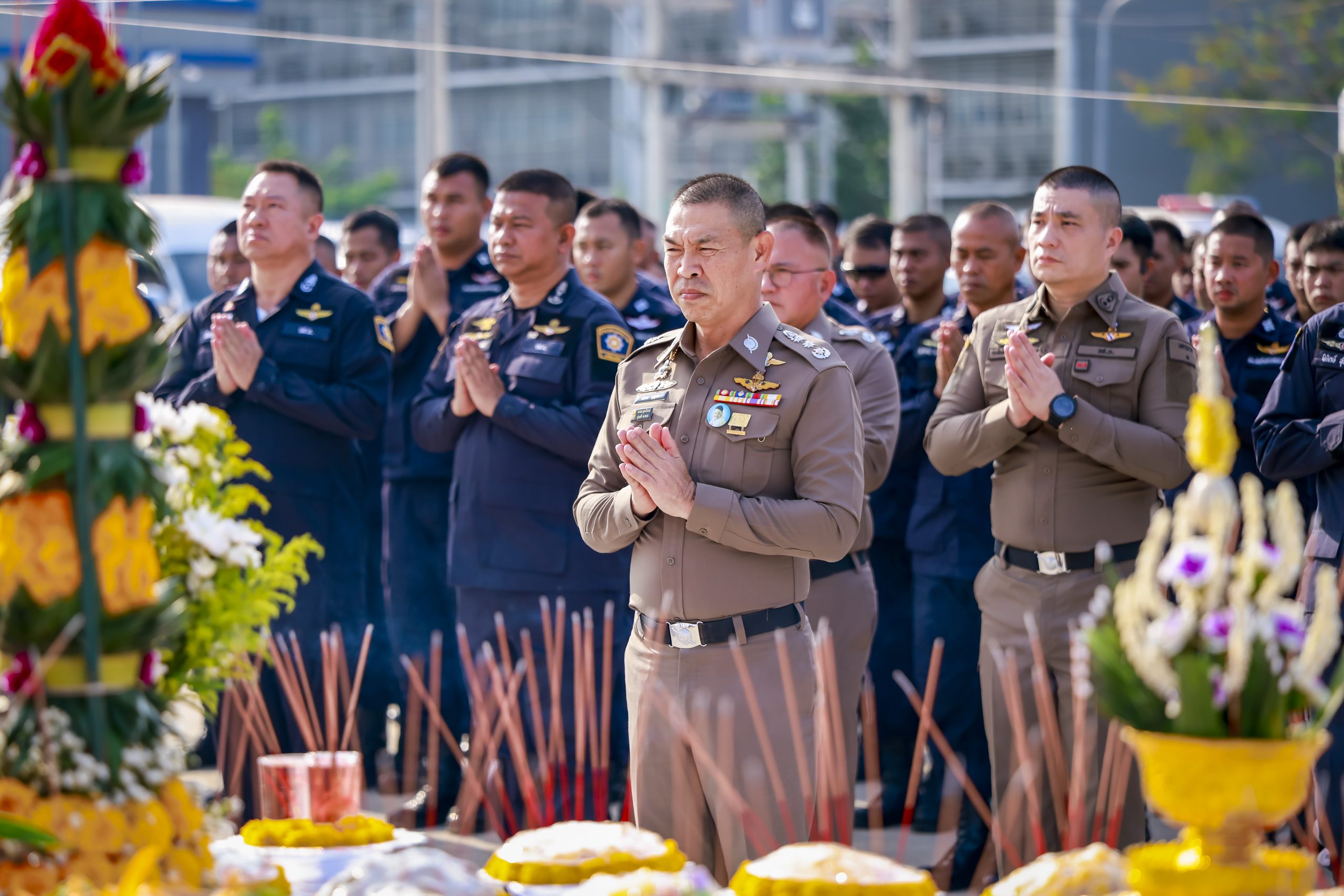 กองกำกับการต่อต้านการก่อการร้าย นำโดย พ.ต.อ.อาทิตย์ วงษ์จันนา ผกก.ต่อต้านการก่อการร้าย พร้อมด้วยข้าราชการตำรวจในสังกัดและครอบครัว เข้าร่วมพิธีอย่างพร้อมเพรียง
