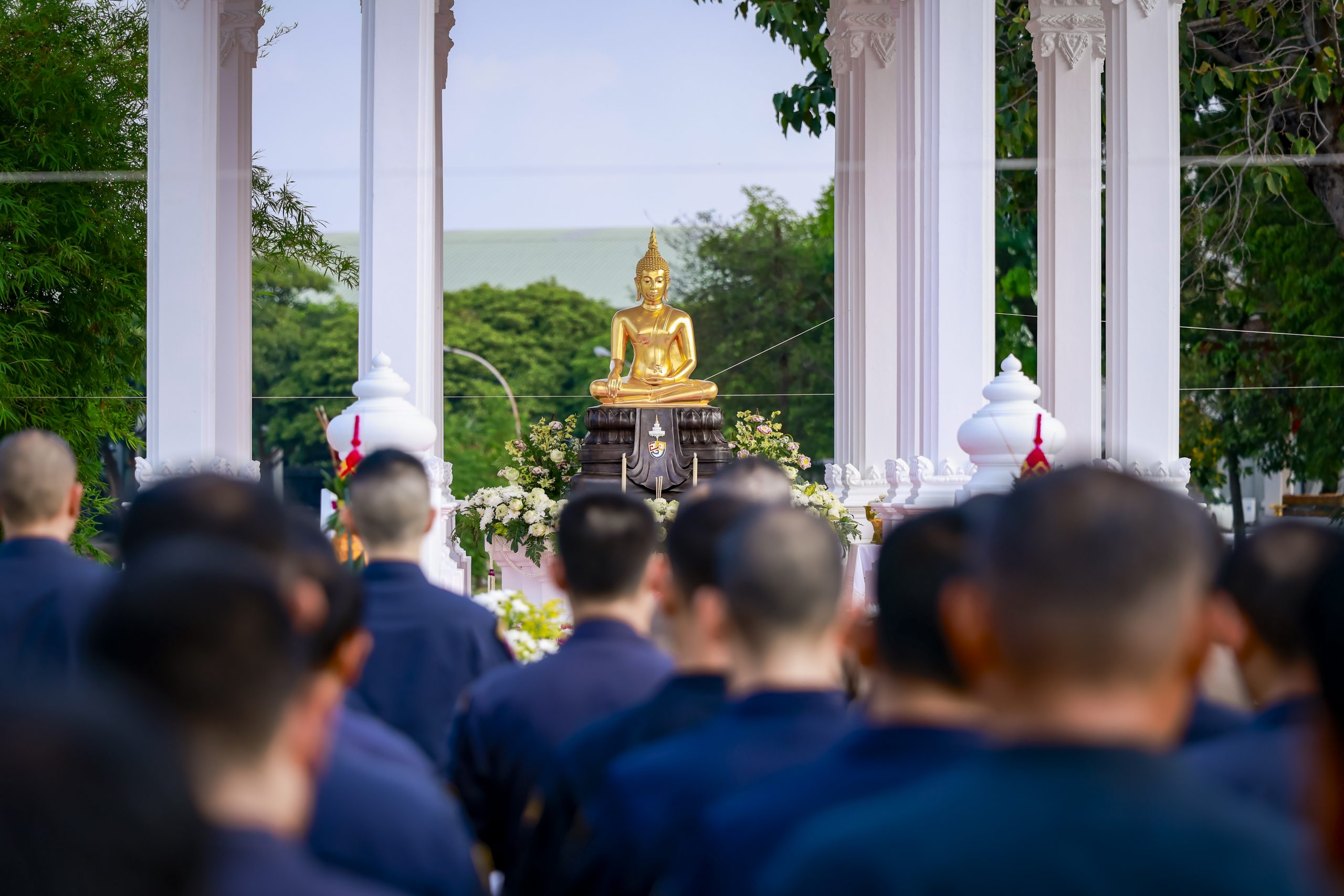 กระทั่งเวลา 09.19 น. ซึ่งเป็นฤกษ์มงคล (ราชาฤกษ์) ประธานในพิธีพร้อมคณะผู้บังคับบัญชา ได้ร่วมกันอัญเชิญพระพุทธรูป “พระพุทธกรุณาประชานาถ” ขึ้นประดิษฐานบนแท่นบูชาหลัก โดยมีพระสงฆ์เจริญชัยมงคลคาถา (บทชยันโต) เสริมความเป็นสิริมงคล จากนั้นเวลา 09.30 น. ได้ถวายเครื่องไทยธรรมและผ้าไตรแด่พระสงฆ์ และในเวลา 09.45 น. พระสงฆ์อนุโมทนา ประธานในพิธีกรวดน้ำ รับพร และรับการประพรมน้ำพระพุทธมนต์ ก่อนเสร็จสิ้นพิธีในเวลา 10.00 น. พร้อมถ่ายภาพที่ระลึกร่วมกัน