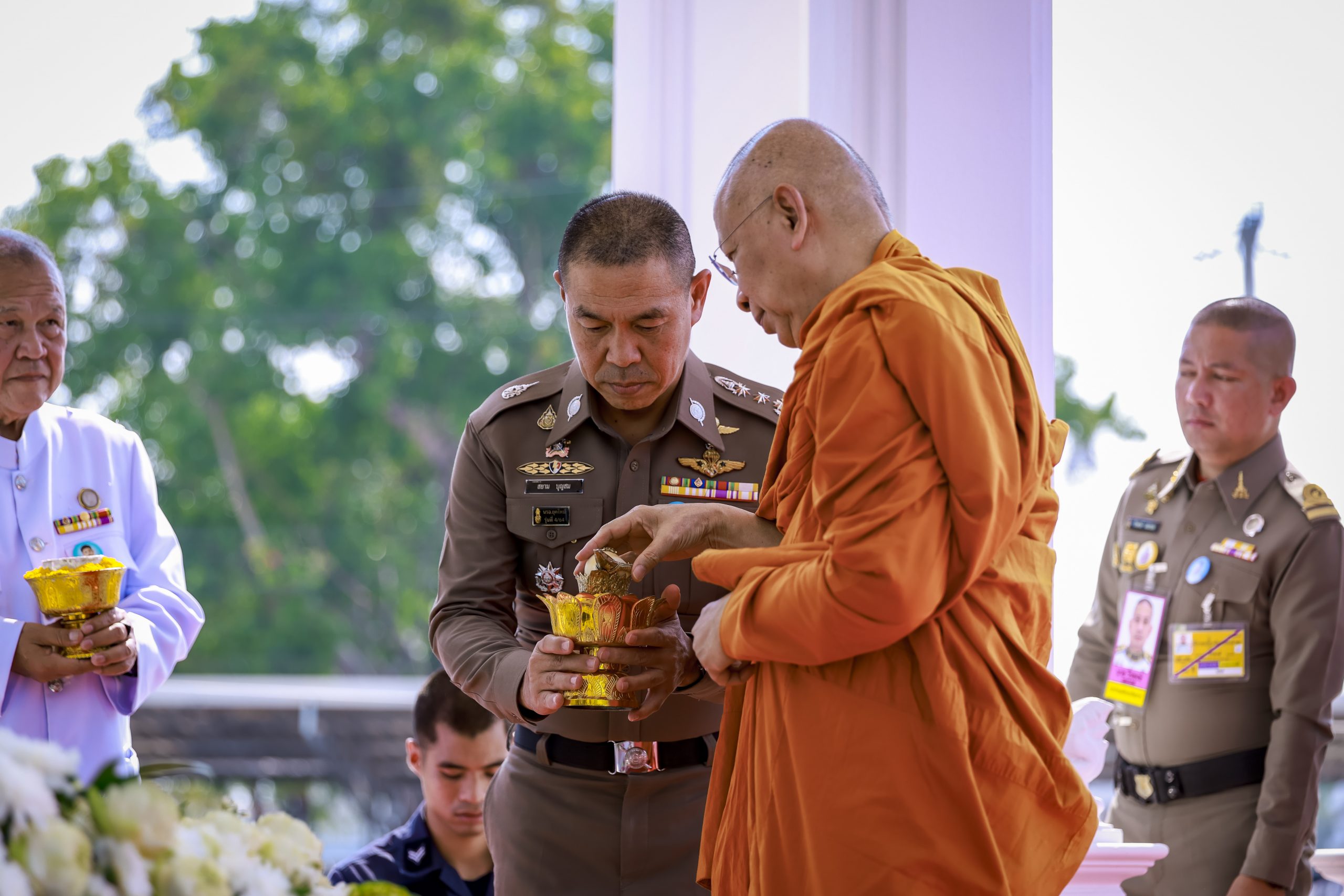 ในการนี้ พล.ต.ท.สยาม บุญสม ผบช.น. เป็นประธานในพิธีฝ่าย ฆราวาส พร้อมด้วย พล.ต.ต.พัลลภ แอร่มหล้า รอง ผบช.น., พล.ต.ต.ธีรเดช ธรรมสุธีร์ รอง ผบช.น., พล.ต.ต.ทินกร สมวันดี ผบก.อก.บช.น., พล.ต.ต.วรศักดิ์ พิสิษฐบรรณกร ผบก.น.1