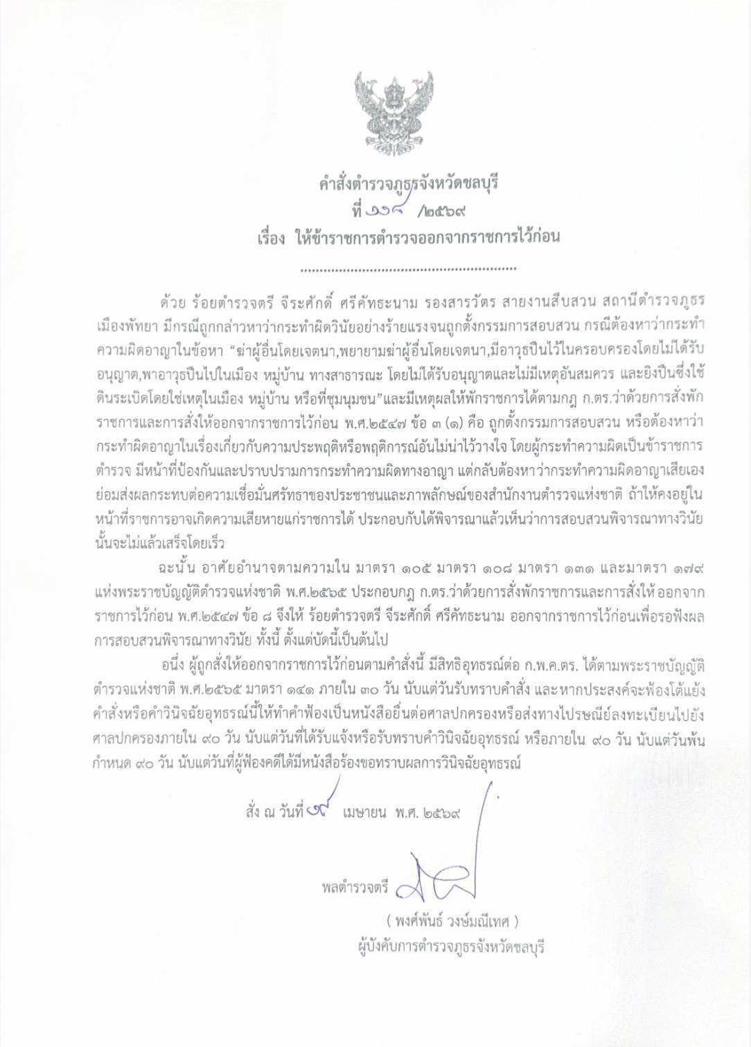 ตำรวจภาค 2 สั่งเด็ดขาด ให้ออกจากราชการ ดำเนินคดีทุกข้อหา ตำรวจสืบพัทยา ยิงผู้อื่นเสียชีวิต