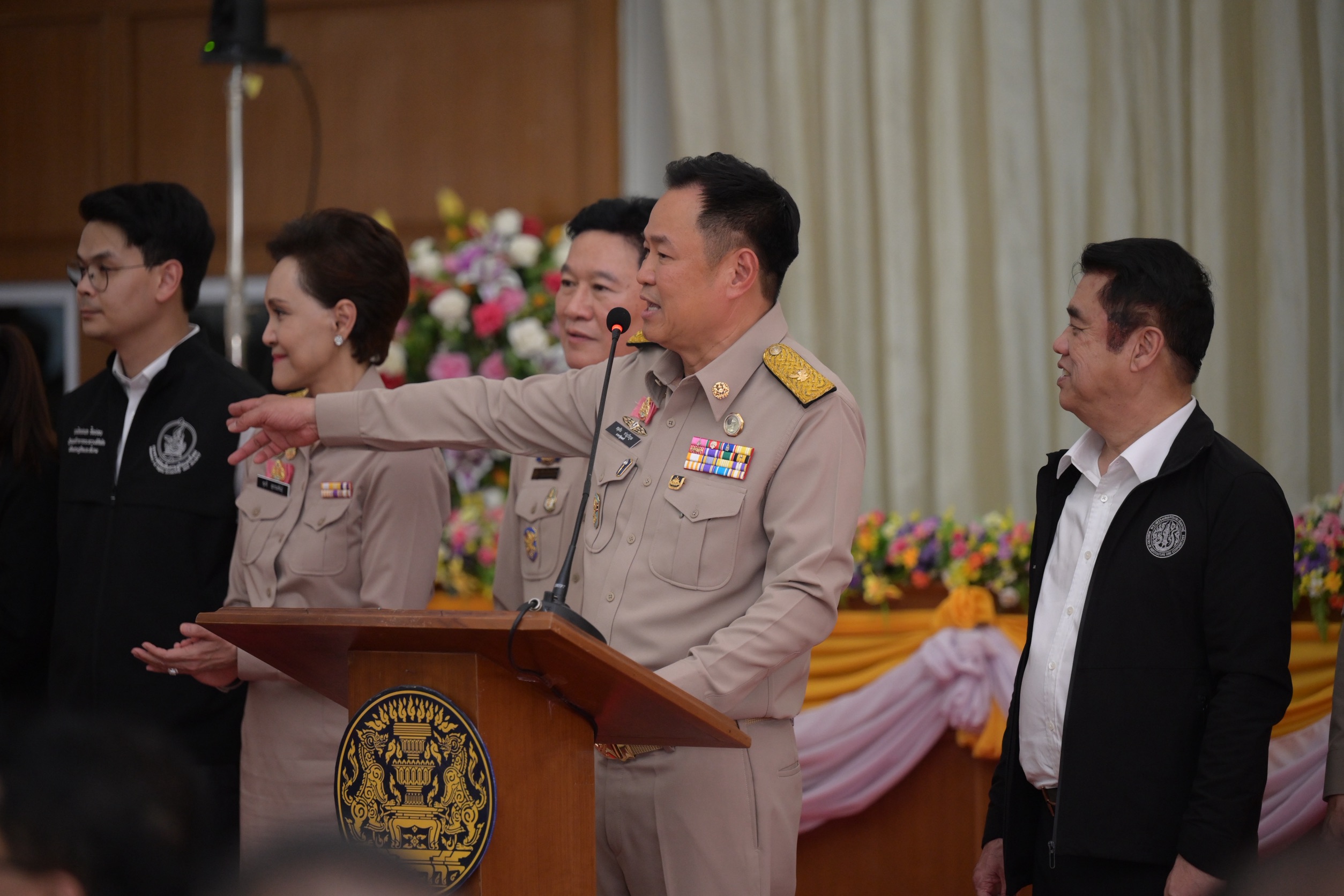 การลงพื้นที่ในวันนี้ มีนายทรงศักดิ์ ทองศรี รองนายกรัฐมนตรี (ประธานคณะกรรมการแก้ปัญหาสาธารณภัยภาคเหนือ) นางศุภจี สุธรรมพันธุ์ รองนายกรัฐมนตรีและรัฐมนตรีว่าการกระทรวงพาณิชย์ นายสุริยะ จึงรุ่งเรืองกิจ รัฐมนตรีว่าการกระทรวงเกษตรและสหกรณ์ นายสุชาติ ชมกลิ่น รัฐมนตรีว่าการกระทรวงทรัพยากรธรรมชาติและสิ่งแวดล้อม นายไชยชนก ชิดชอบ รัฐมนตรีว่าการกระทรวงดิจิทัลเพื่อเศรษฐกิจและสังคม และนายเจเศรษฐ์ ไทยเศรษฐ์ รัฐมนตรีช่วยว่าการกระทรวงมหาดไทย นางสาวปิยรัฐชย์ ติยะไพรัช รัฐมนตรีช่วยว่าการกระทรวงเกษตรและสหกรณ์ รวมถึงผู้บริหารระดับสูง อาทิ นางสาวไตรศุลี ไตรสรณกุล เลขาธิการนายกรัฐมนตรี นายอรรษิษฐ์ สัมพันธรัตน์ ปลัดกระทรวงมหาดไทย นายนฤชา โฆษาศิวิไลซ์ อธิบดีกรมการปกครอง นายธีรพัฒน์ คัชมาตย์ อธิบดีกรมป้องกันและบรรเทาสาธารณภัย ร่วมด้วย