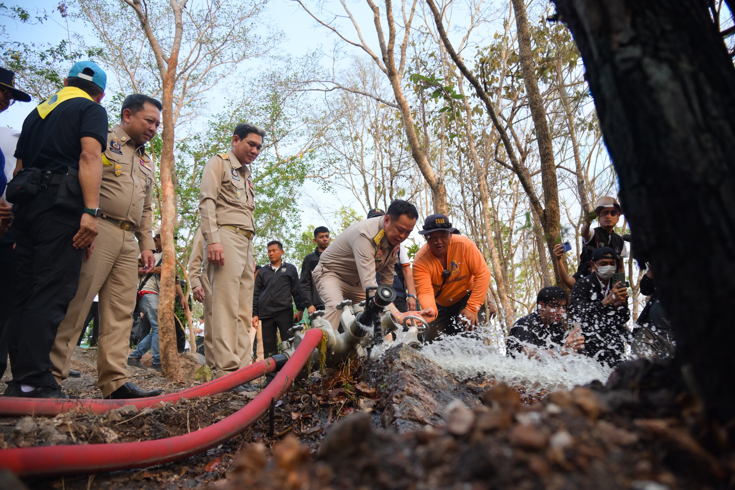 20 เม.ย. 69 เวลา 16.30 น. ที่วัดพระธาตุดอยสะเก็ด อ.ดอยสะเก็ด จ.เชียงใหม่ นายอนุทิน ชาญวีรกูล นายกรัฐมนตรีและรัฐมนตรีว่าการกระทรวงมหาดไทย นำคณะลงพื้นที่ติดตามภารกิจดับไฟป่า ตามแนวคิด “ป่าเปียก (Wet Fire Break)” และติดตามการนำเทคโนโลยีอากาศยานไร้คนขับ (UAV) ขนาดใหญ่ สำรวจและดับไฟป่าในพื้นที่ พร้อมทั้งให้กำลังใจและพบปะเจ้าหน้าที่ผู้ปฏิบัติการควบคุมไฟป่าพื้นที่ดอยสะเก็ด โดยมี คณะรัฐมนตรี และหัวหน้าส่วนราชการ ซึ่งในส่วนของกระทรวงมหาดไทย มีนายเจเศรษฐ์ ไทยเศรษฐ์ รัฐมนตรีช่วยว่าการกระทรวงมหาดไทย นายอรรษิษฐ์ สัมพันธรัตน์ ปลัดกระทรวงมหาดไทย นายนฤชา โฆษาศิวิไลซ์ อธิบดีกรมการปกครอง นายธีรพัฒน์ คัชมาตย์ อธิบดีกรมป้องกันและบรรเทาสาธารณภัย นายรัฐพล นราดิศร ผู้ว่าราชการจังหวัดเชียงใหม่ และผู้ว่าราชการจังหวัดอีก 7 จังหวัดภาคเหนือตอนบน พร้อมประชาชนจิตอาสา และเจ้าหน้าที่ที่เกี่ยวข้อง เข้าร่วม